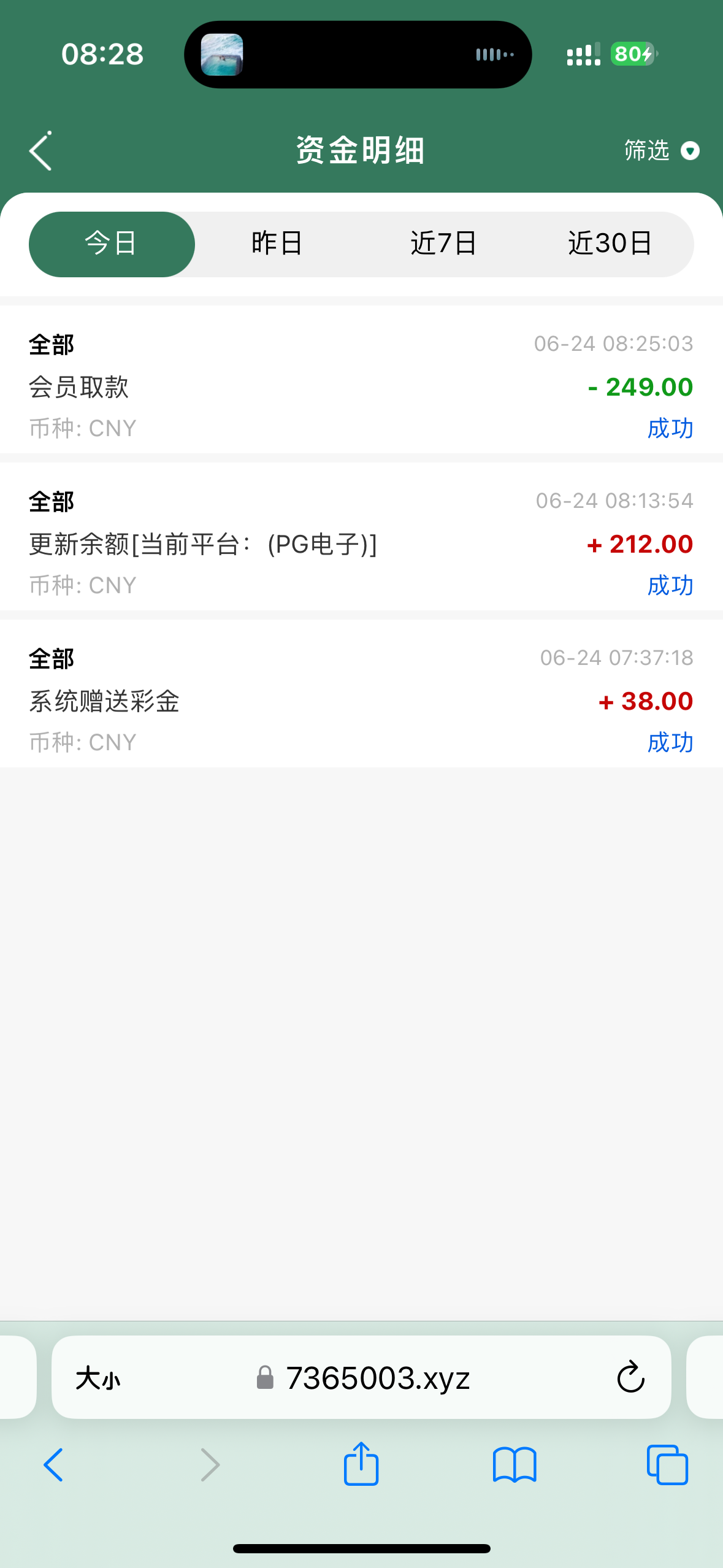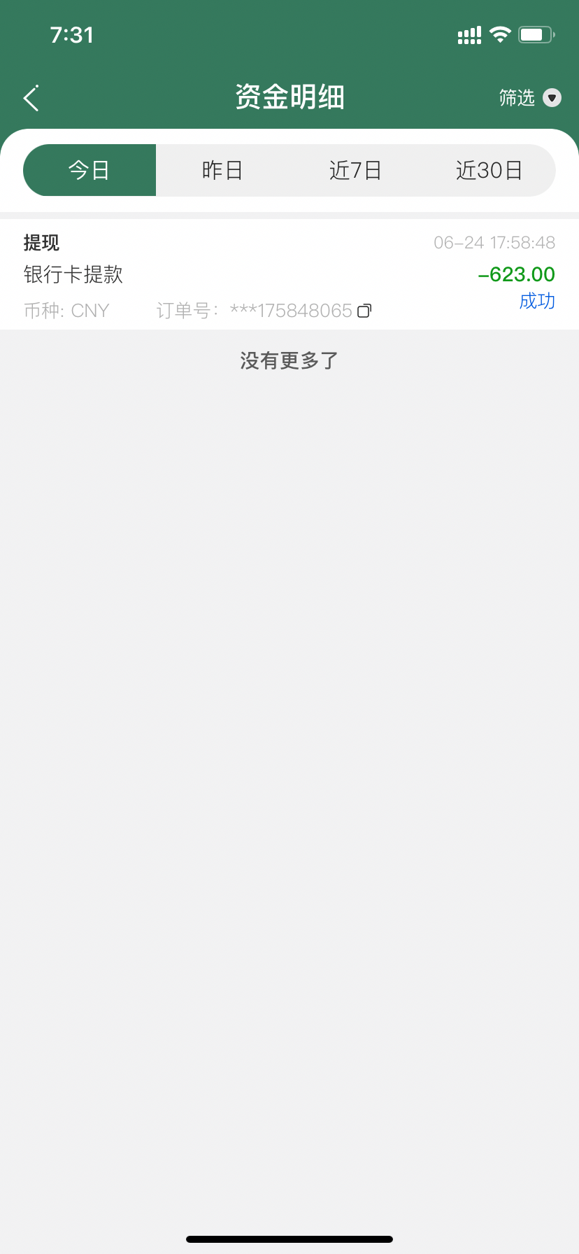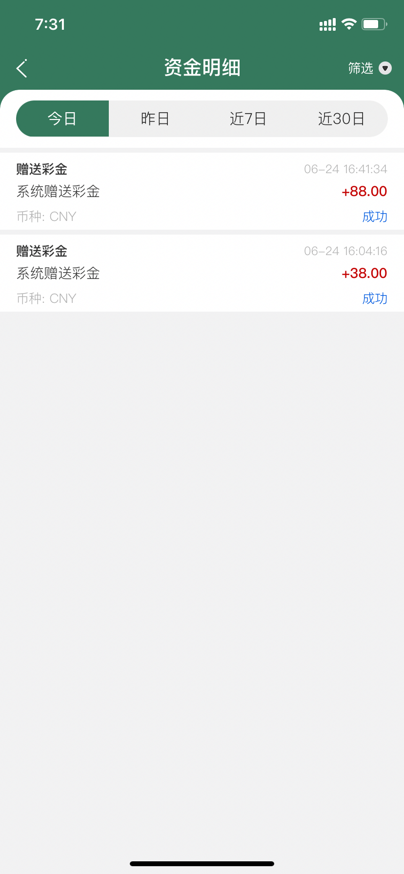 第二天收到了50。提了300