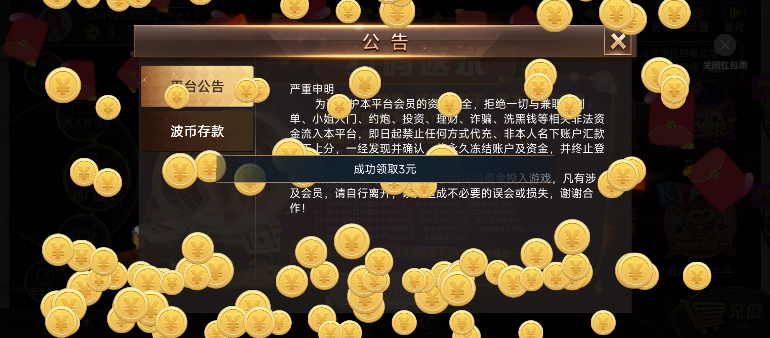 很简单,下载这个台app然后打开点弹窗红包其他不用管直接去pg打,没打出来的安卓手机自带一个应用分身,分身一下接着打,再没打出来的应用商店下载一个悟空分身看几个广告能领2小时会员无限开分身够打的了。打出来的号绑手机号跟银行卡然后再绑(okpay topay gopay 波币钱包)四个钱包其中一个,我跟我朋友出的两个钱包一个是波币一个okpay都是几分钟到账好像是系统自动打款