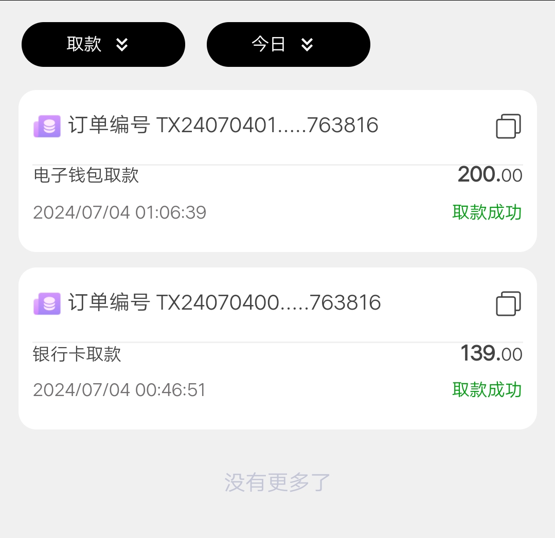 我1号注册的,没有管他,提现两笔到账,第一笔提现必须银行卡