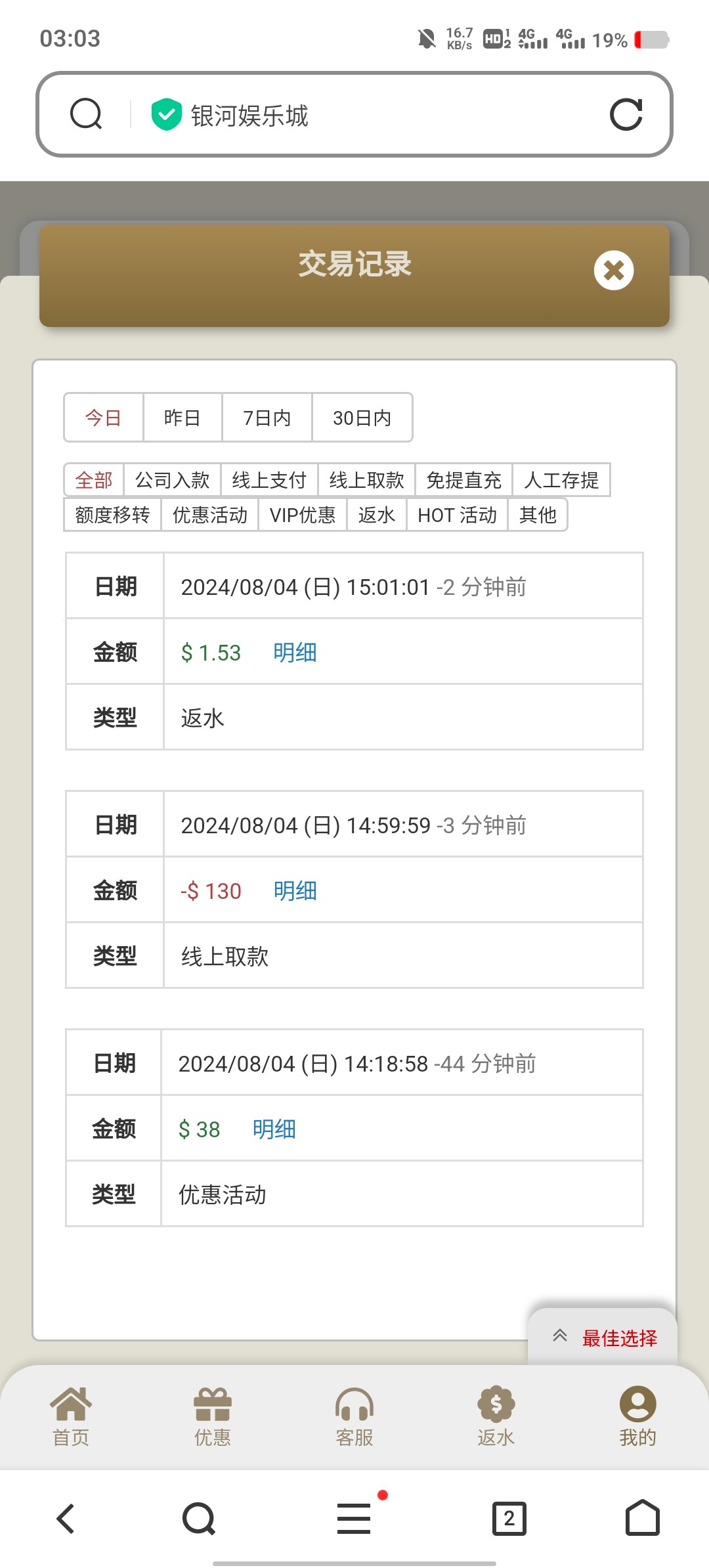 银河3016老用户登录领取38-88回馈彩金,找在线客服申请有就有没有无视即可,具体自测切记勿充值。