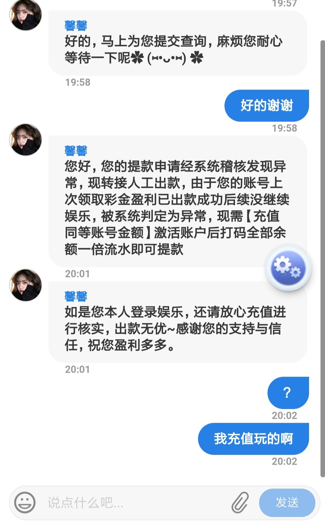 黑的 昨天彩金18打没了 今天充值了100 提200 都不给提