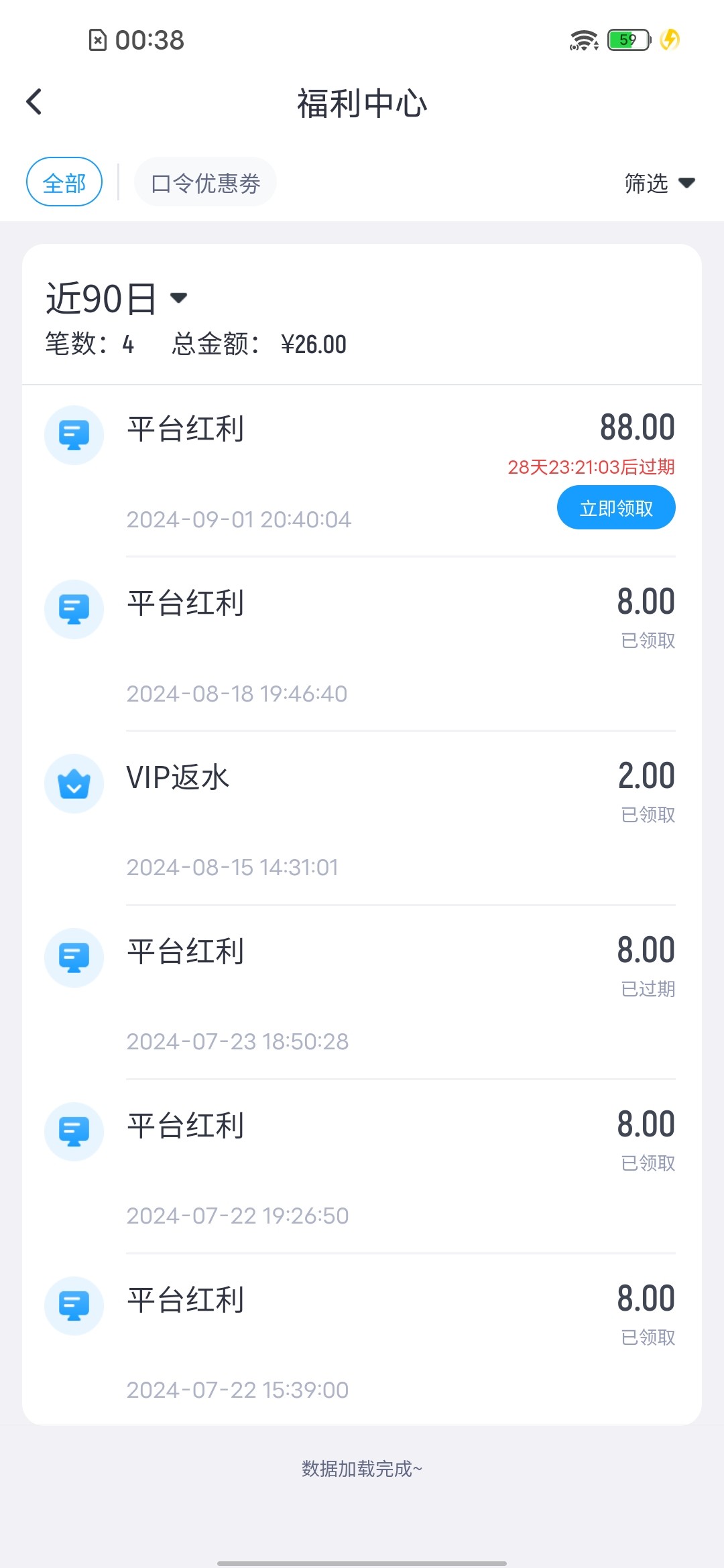 领了两个88,没水