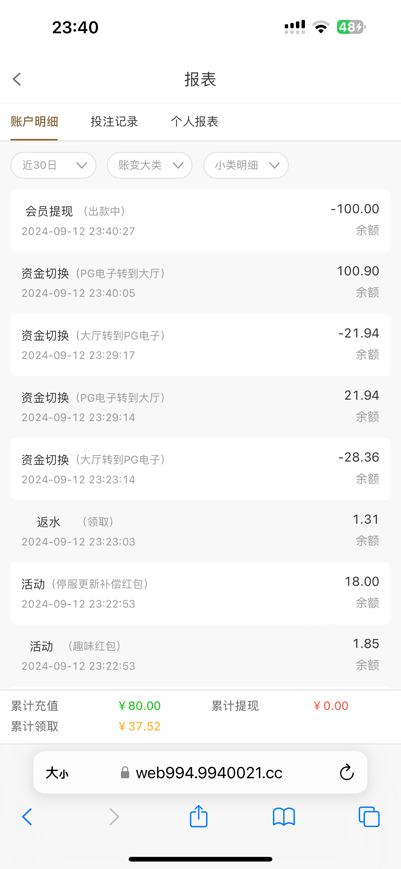 提100已到账