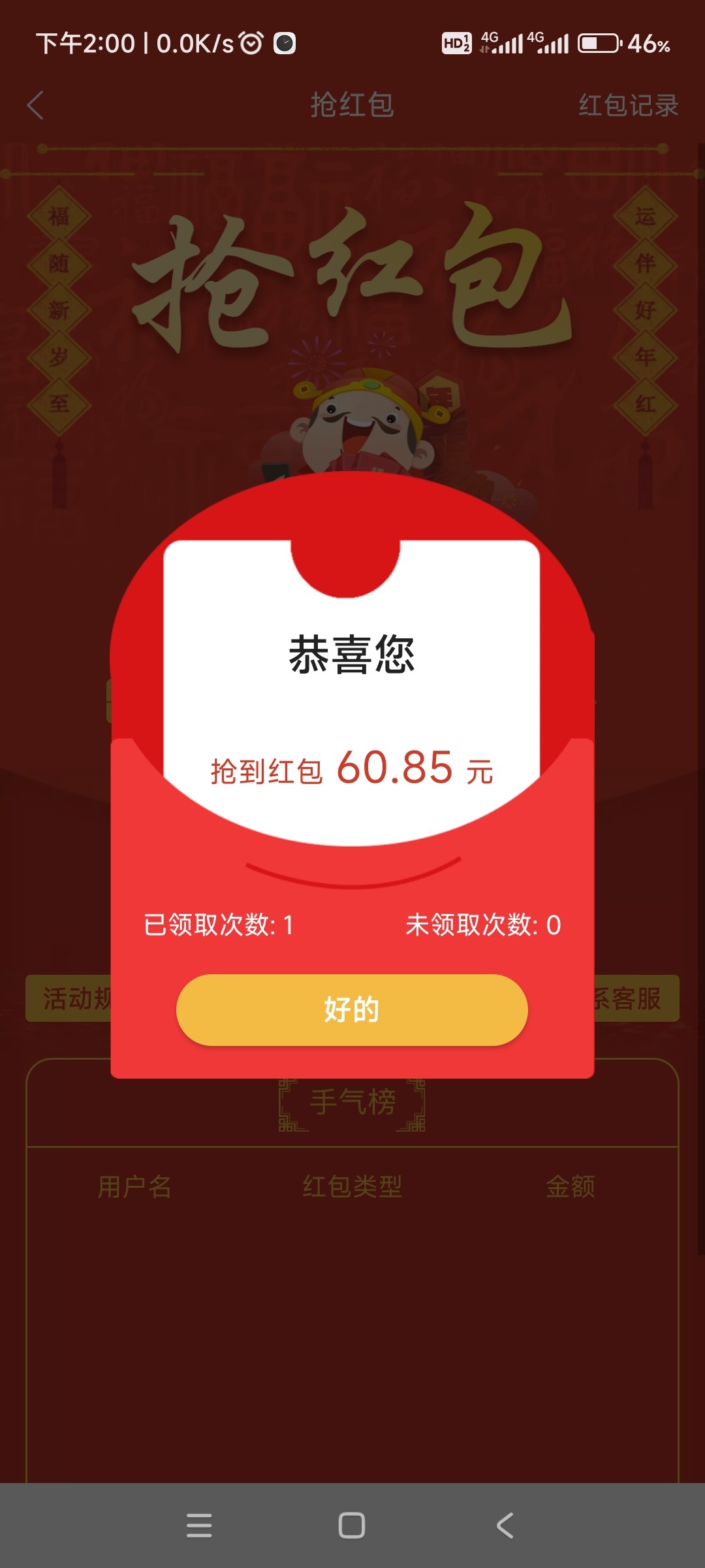 今天两点的红包都挺不错的,一轮下来抢了小1000。