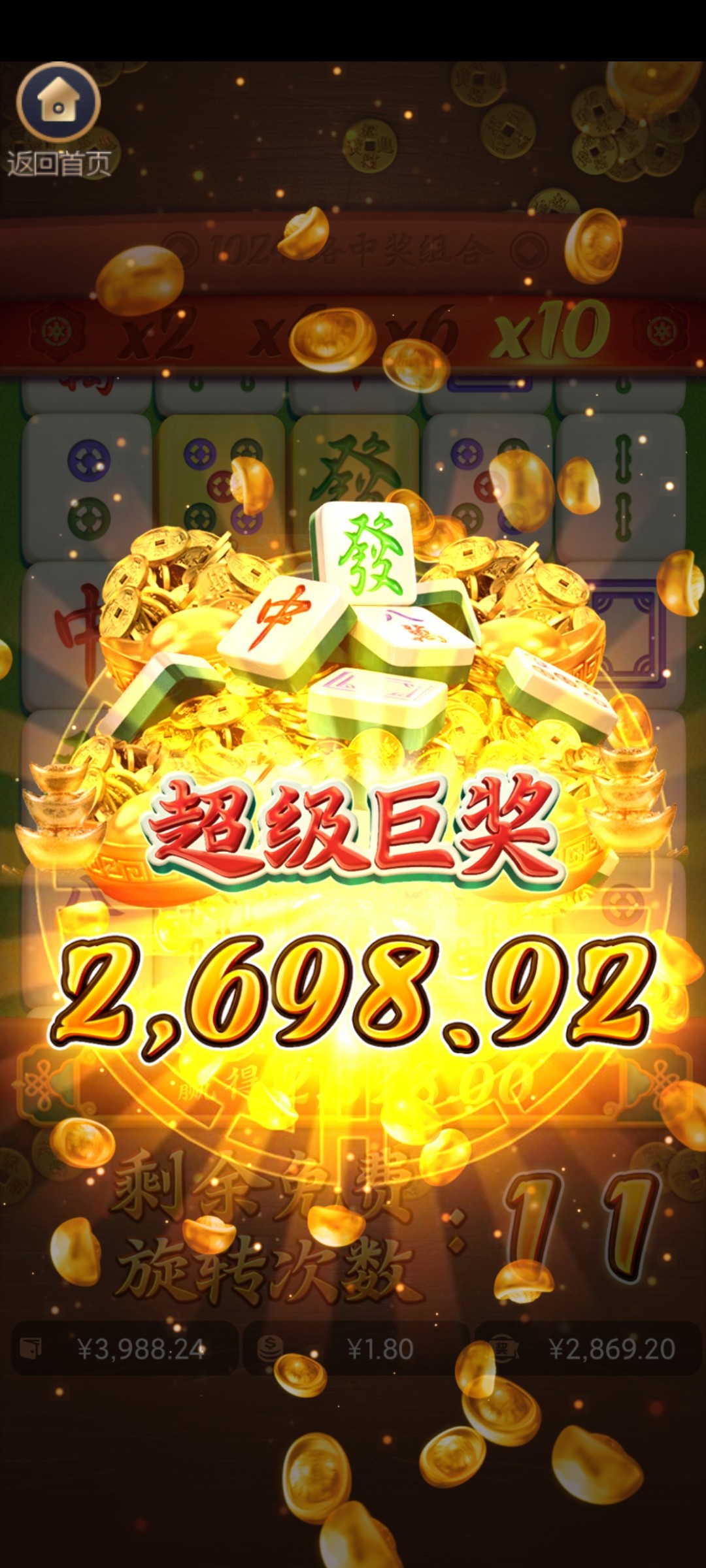 给了四百倍,玩了这么久麻将很少见