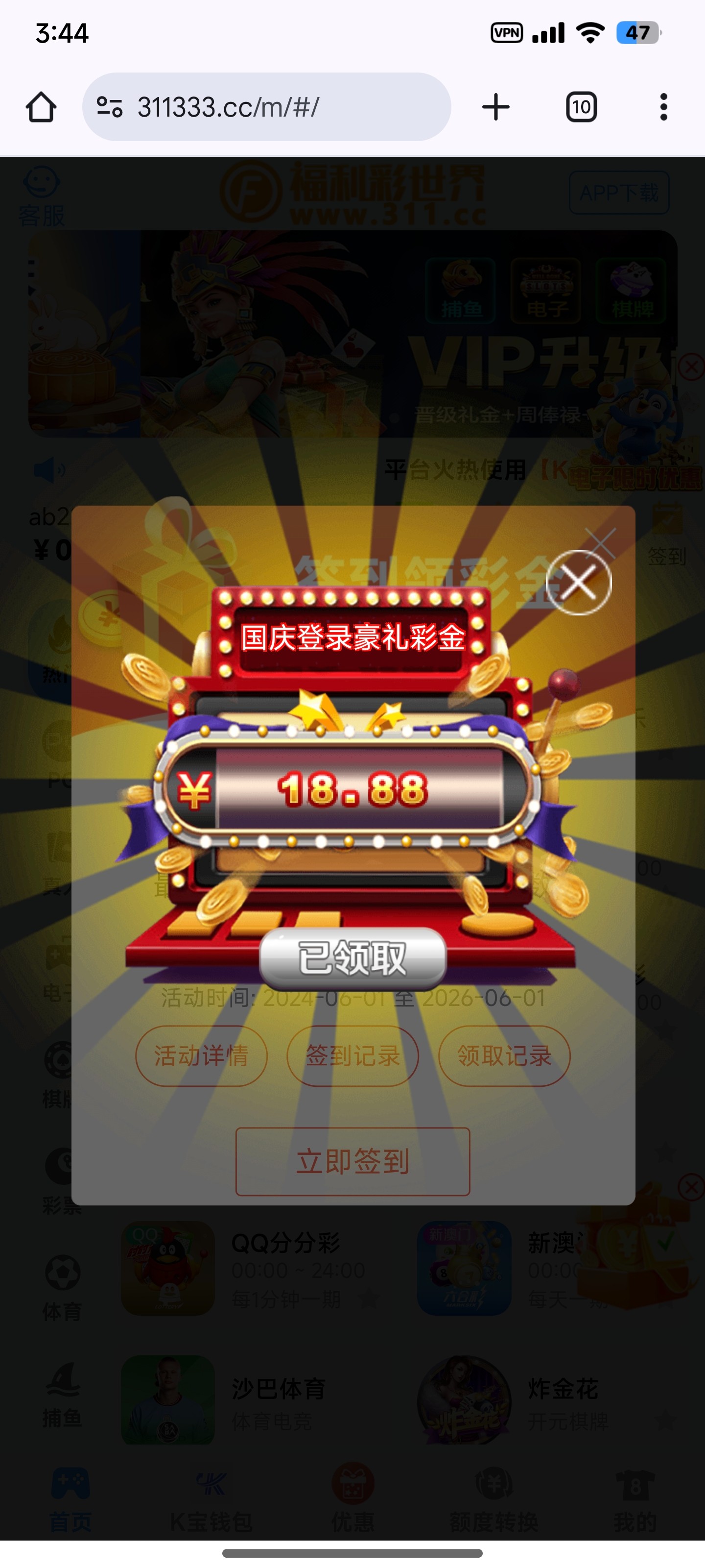 新濠也好久没充值过了,用k宝提没让充值