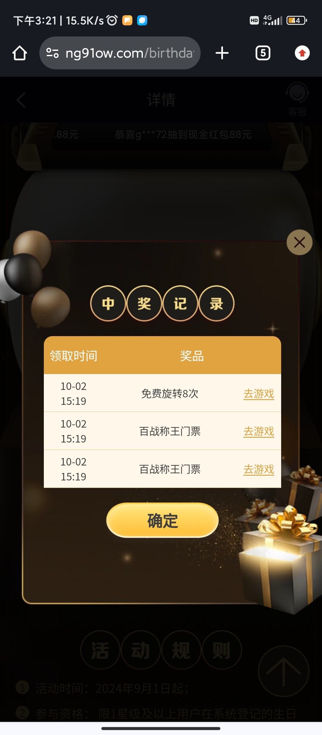 老用户历史充值100+没有设置过生日的用户,把生日设置成当天等个几分钟或者账号退出重进有免费3次机会抽奖,具体自测吧。