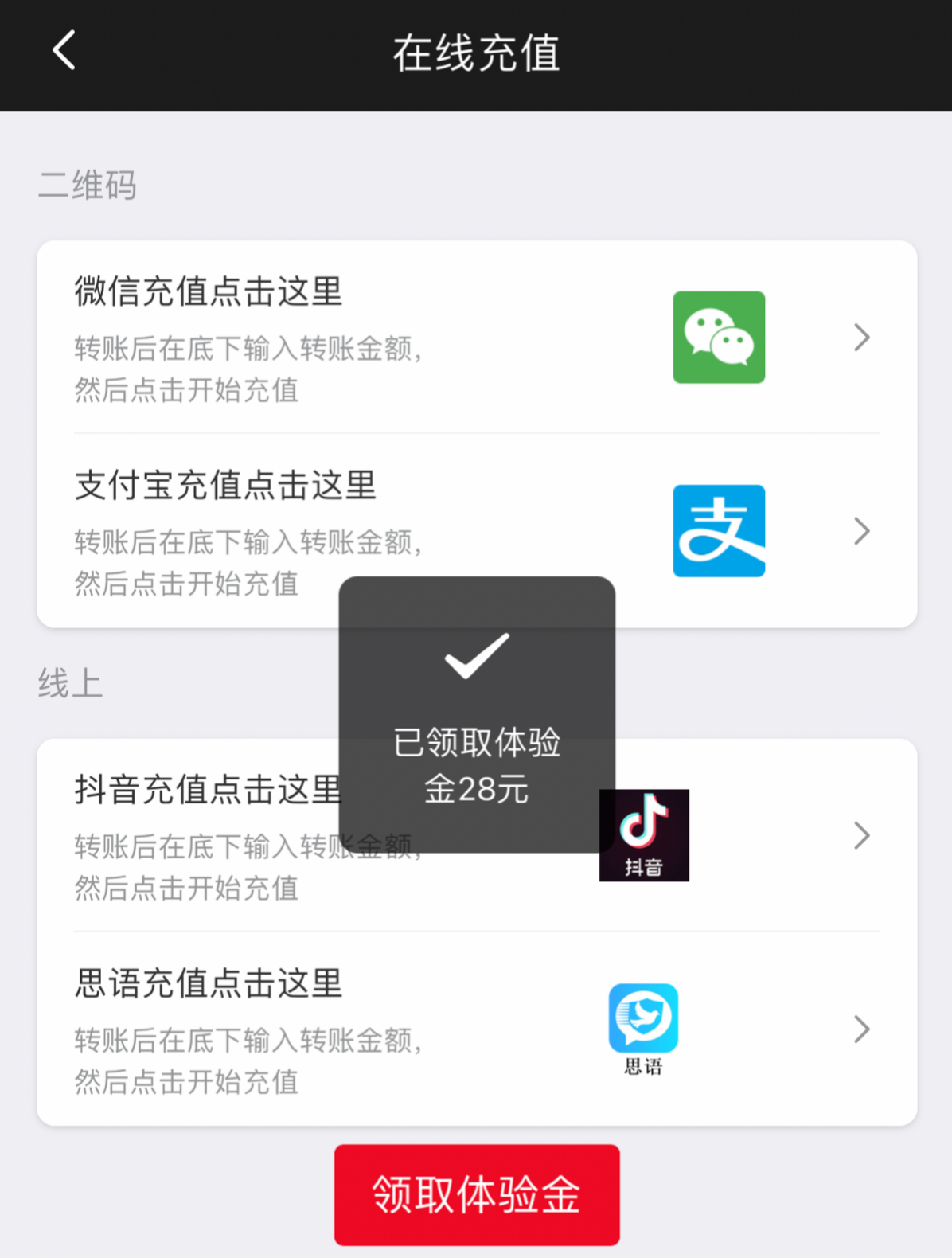 登陆直接点击充值领取28体验金秒到账28打到388流水468下10