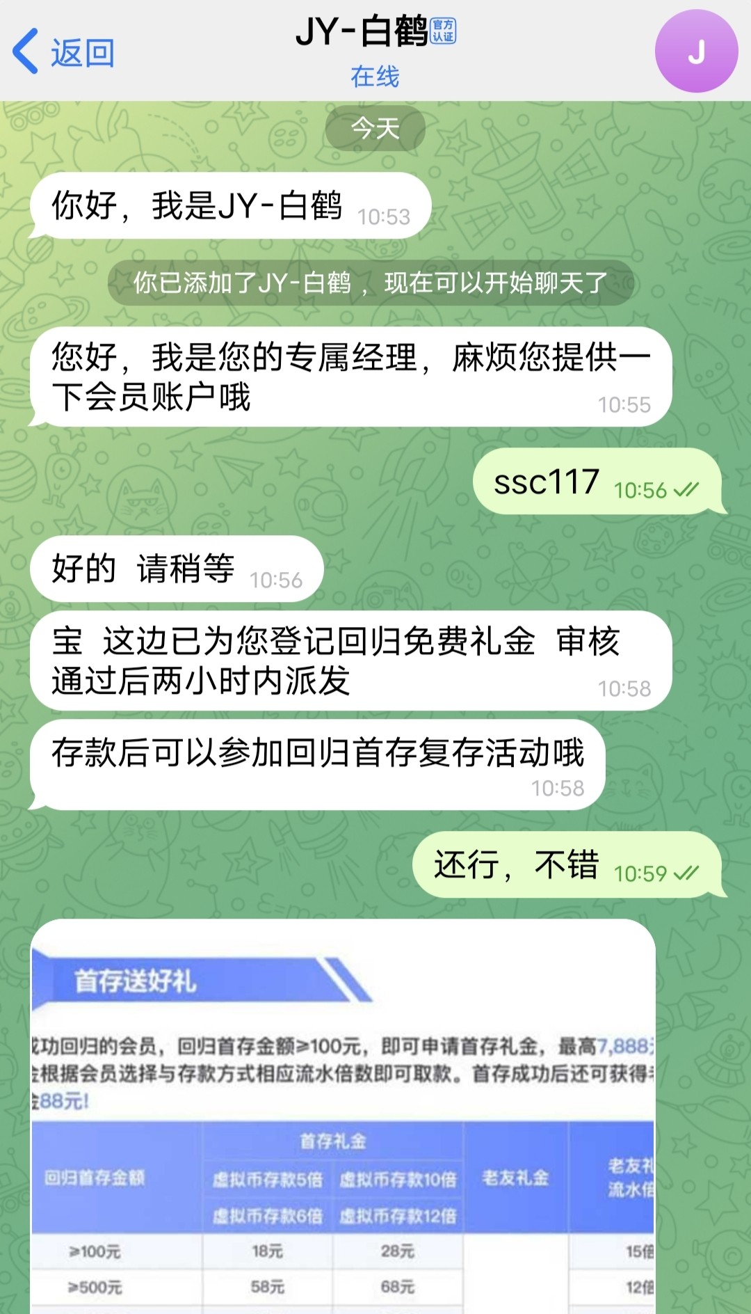 czj134652 开云今天送我168 然后去申请回归又送我158