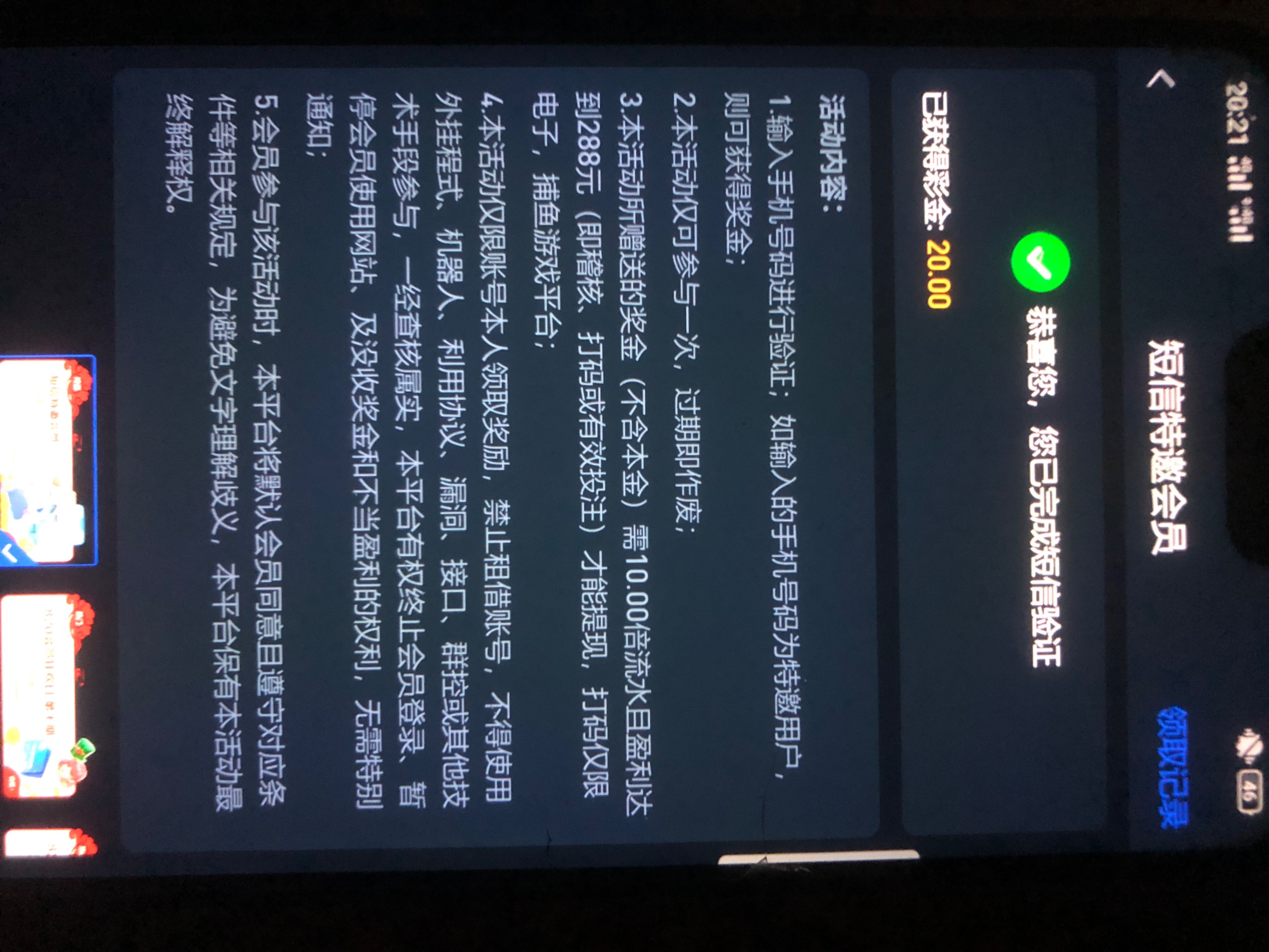 之前注册过,不知道什么时候送了20,号上有20块