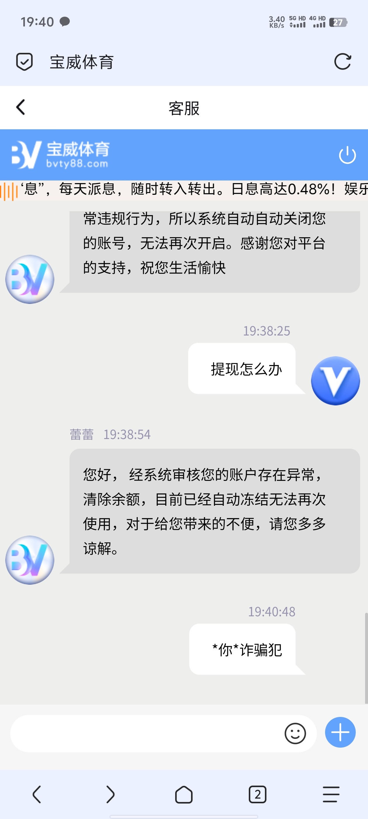 bjk1774246 我记得去年bob还在的时候,八块被我打到1500还提款了,今年的乐鱼开云,提100也封号,狗庄真的活不起了