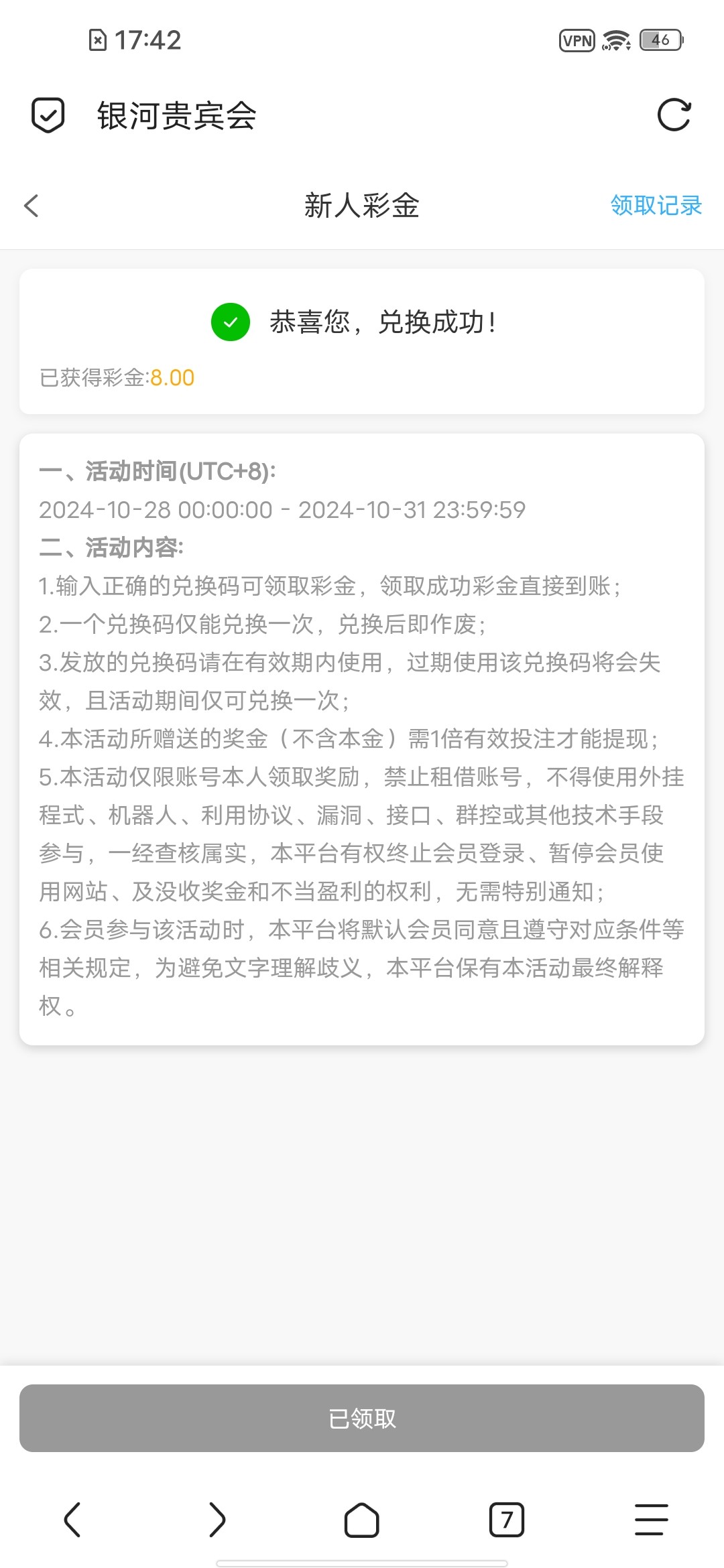 兑换码只能用一次。发出来有什么用?兑换码也能靠猜的么