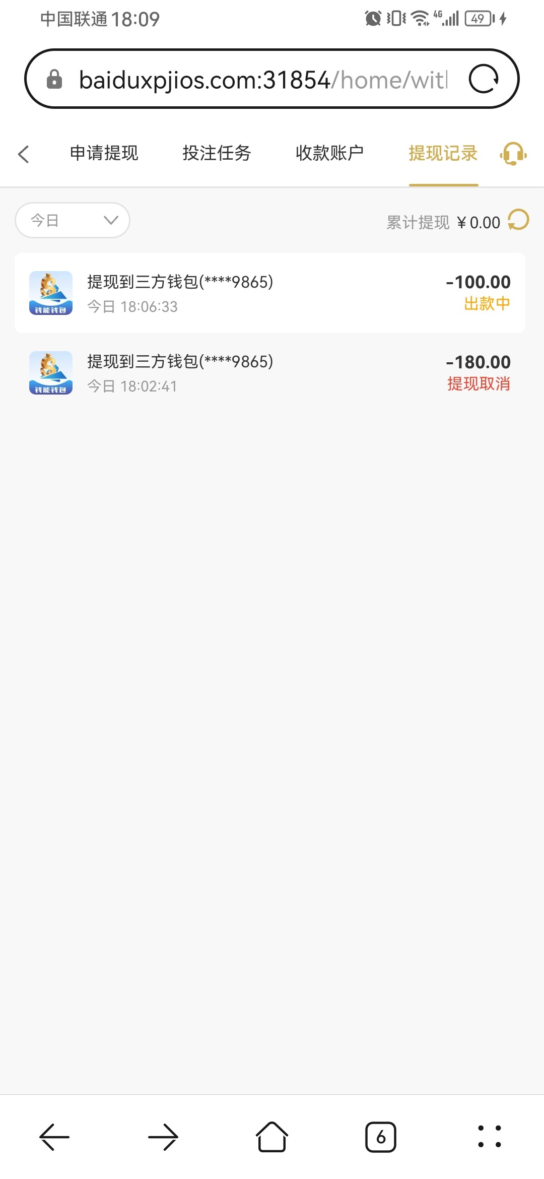 最高提现100,已经到账