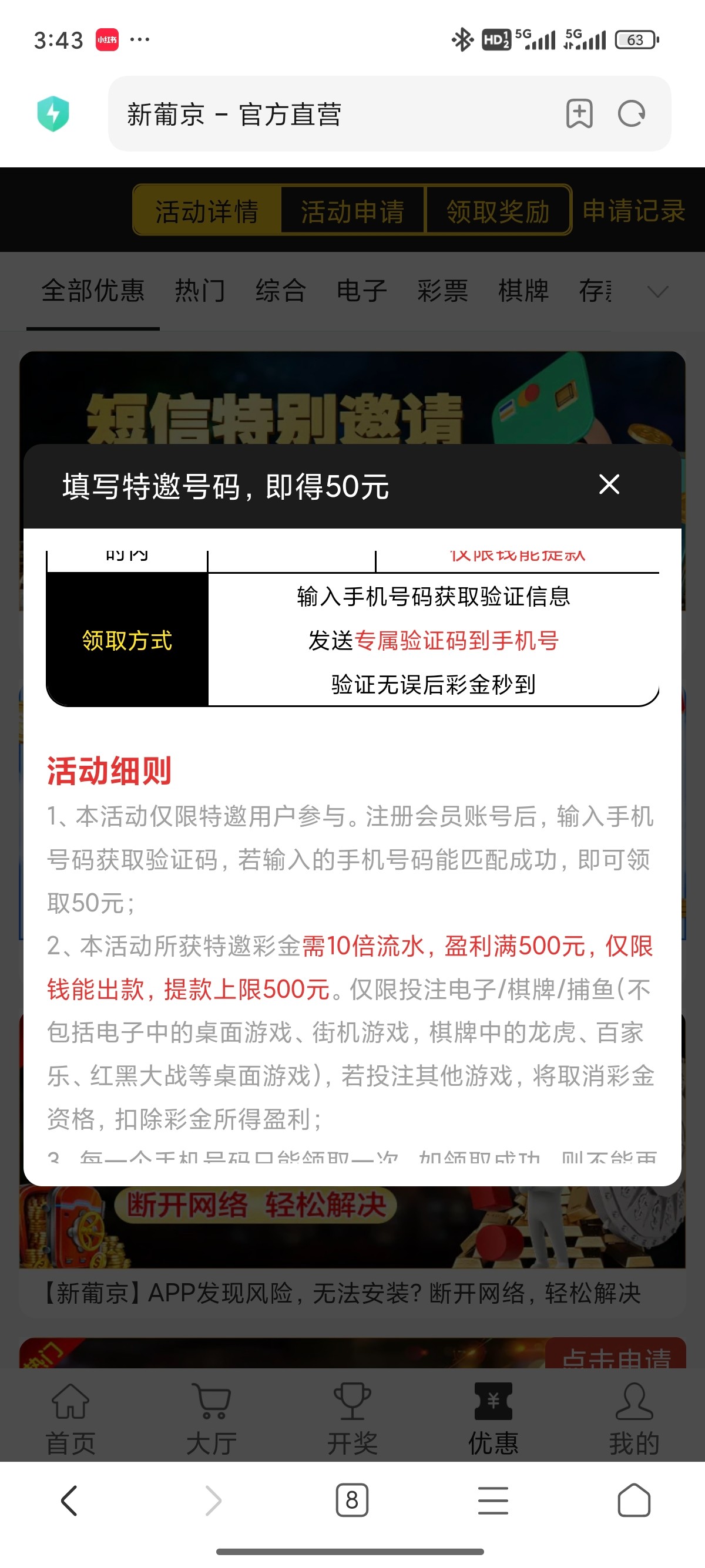 写着50打10倍流水提500 打了60流水申请试试看 直接秒提链接短信图里面