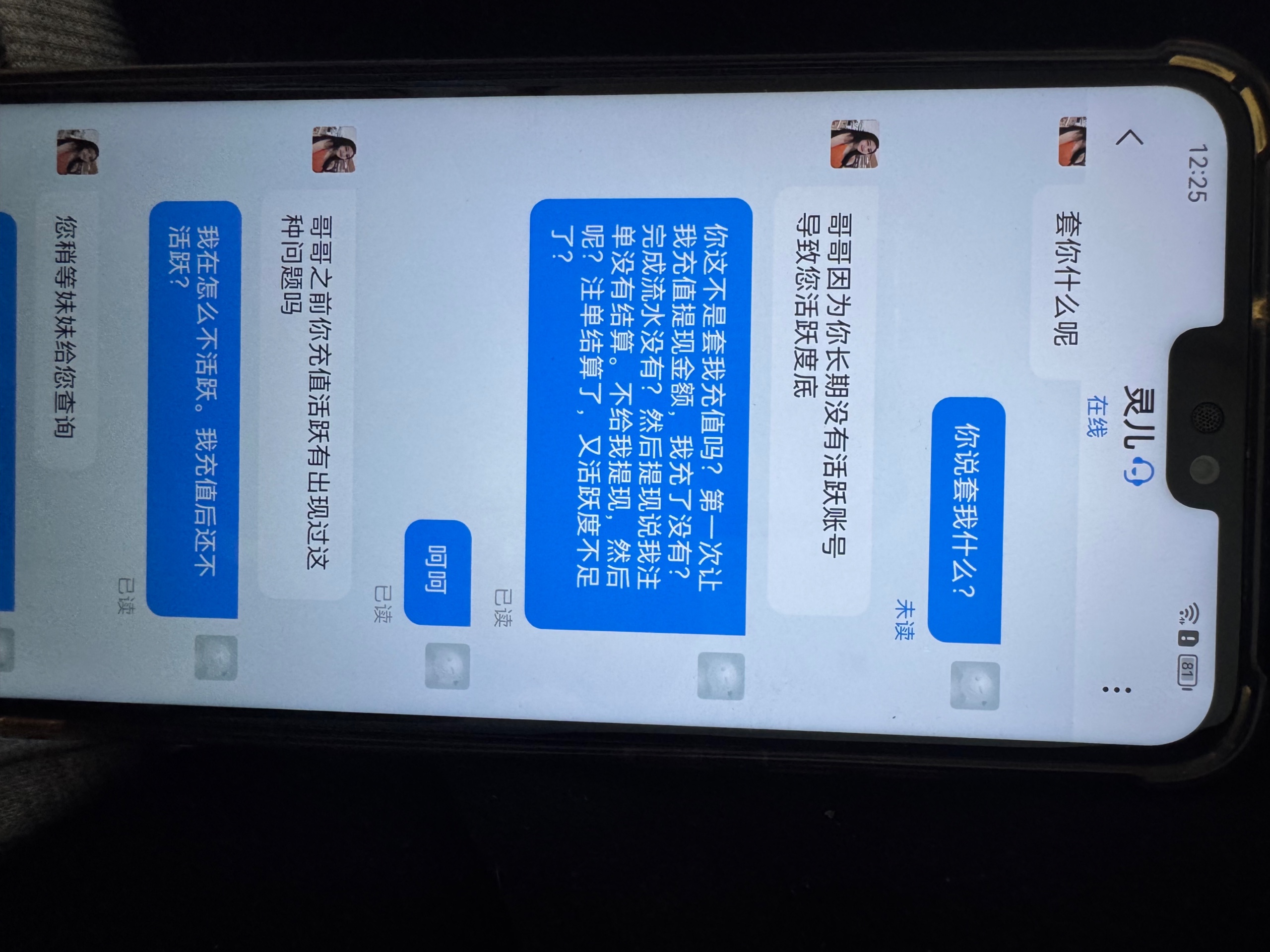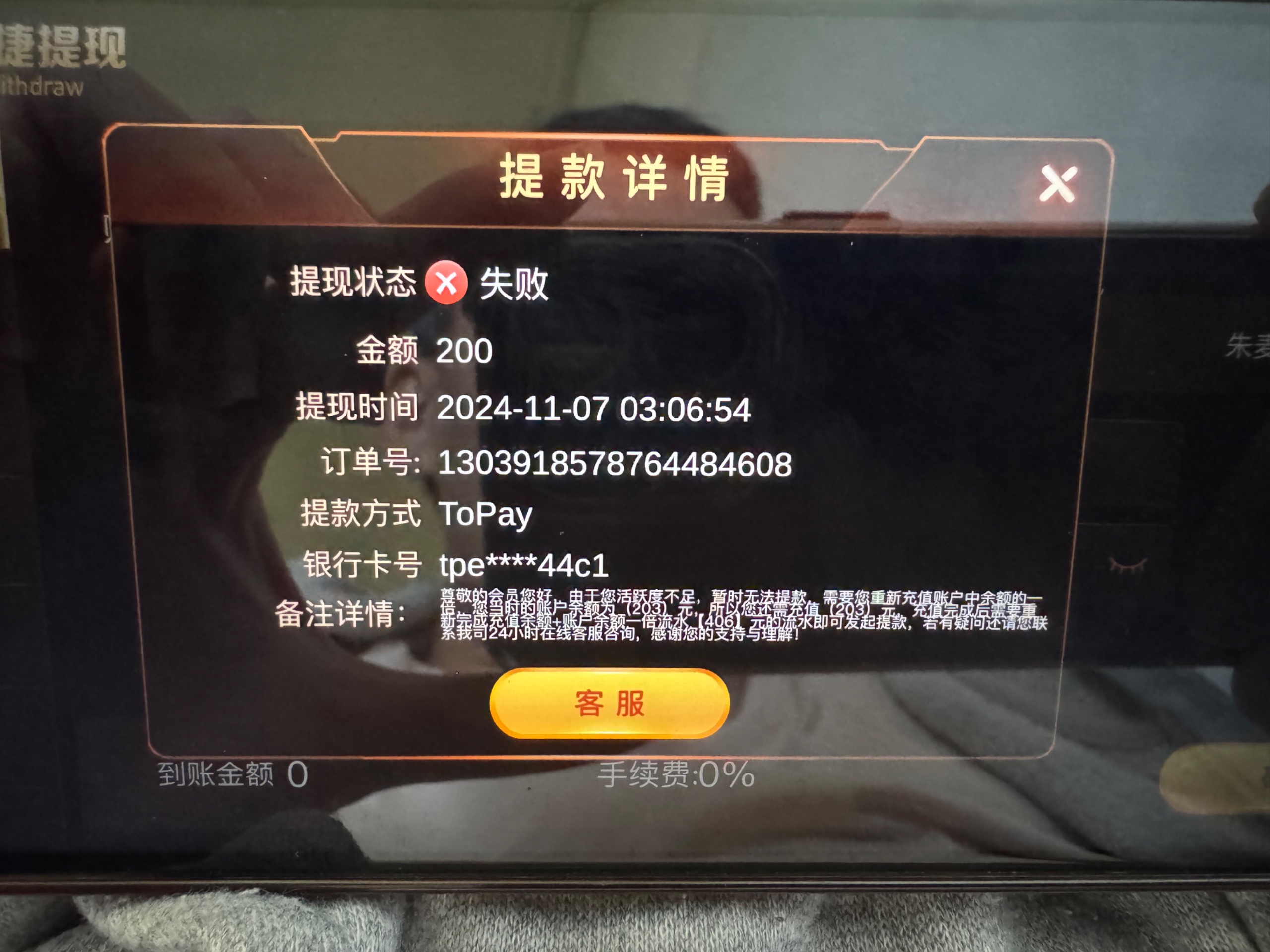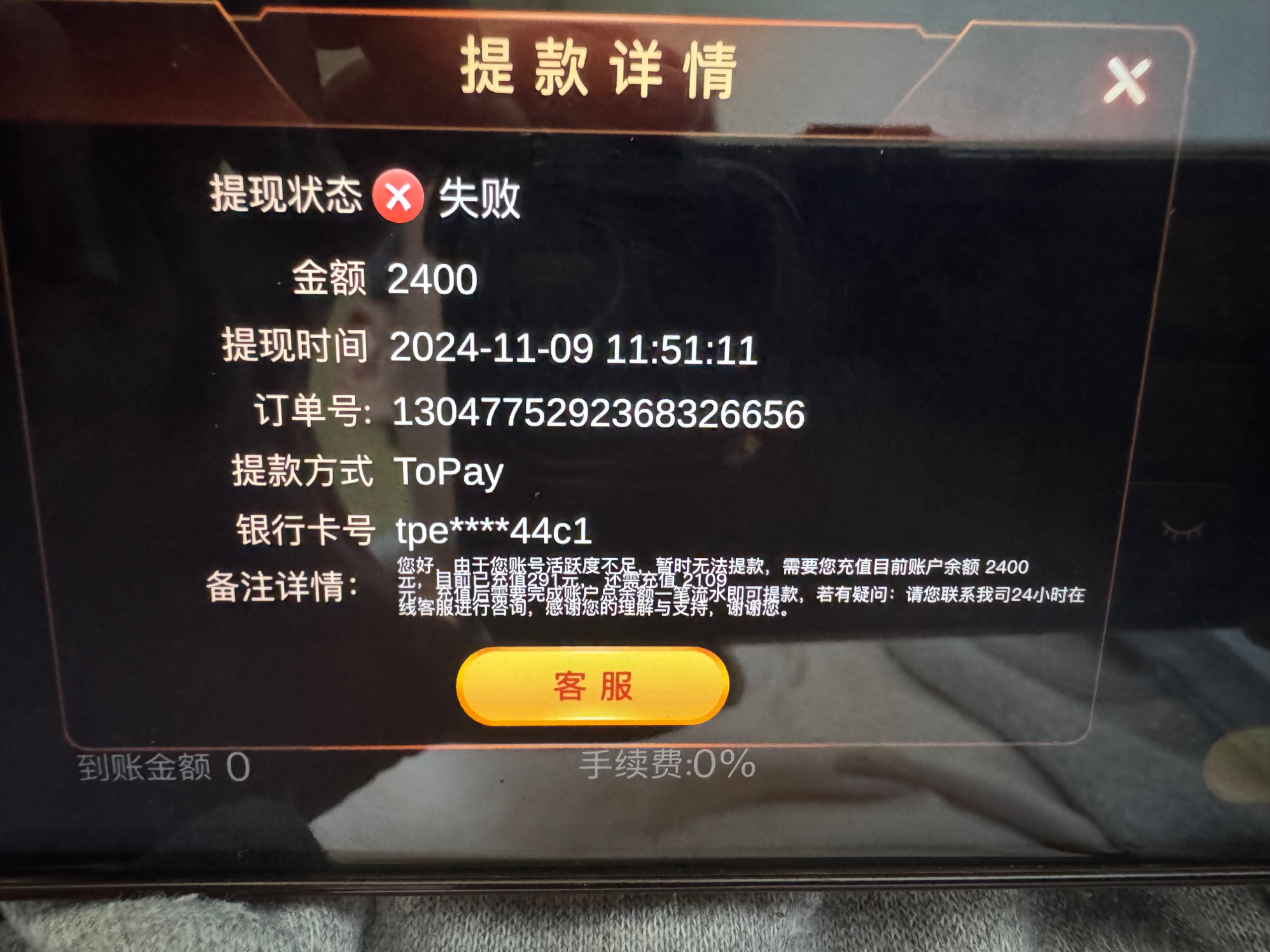 玩了几年的平台,一直负盈利几万了,最近几个月没玩了,送了68彩金,然后提现200说我不活跃,让我充值提现的一倍金额完成一倍流水提现,然后充值后完成流水提现290,又说我不活跃,让我充值够290完成一倍打码提现。然后完成后又以注单没结算为理由拒绝。今天又说我活跃让我再次充值2100。现在网赌就是末路,当你开始玩的时候你就已经输了,这几年输了几百万。哪怕你赢了也不可能给你提现。哪怕你提现了银行取钱你也可能给各种查。现在有3000分收黑分的留下联系方式