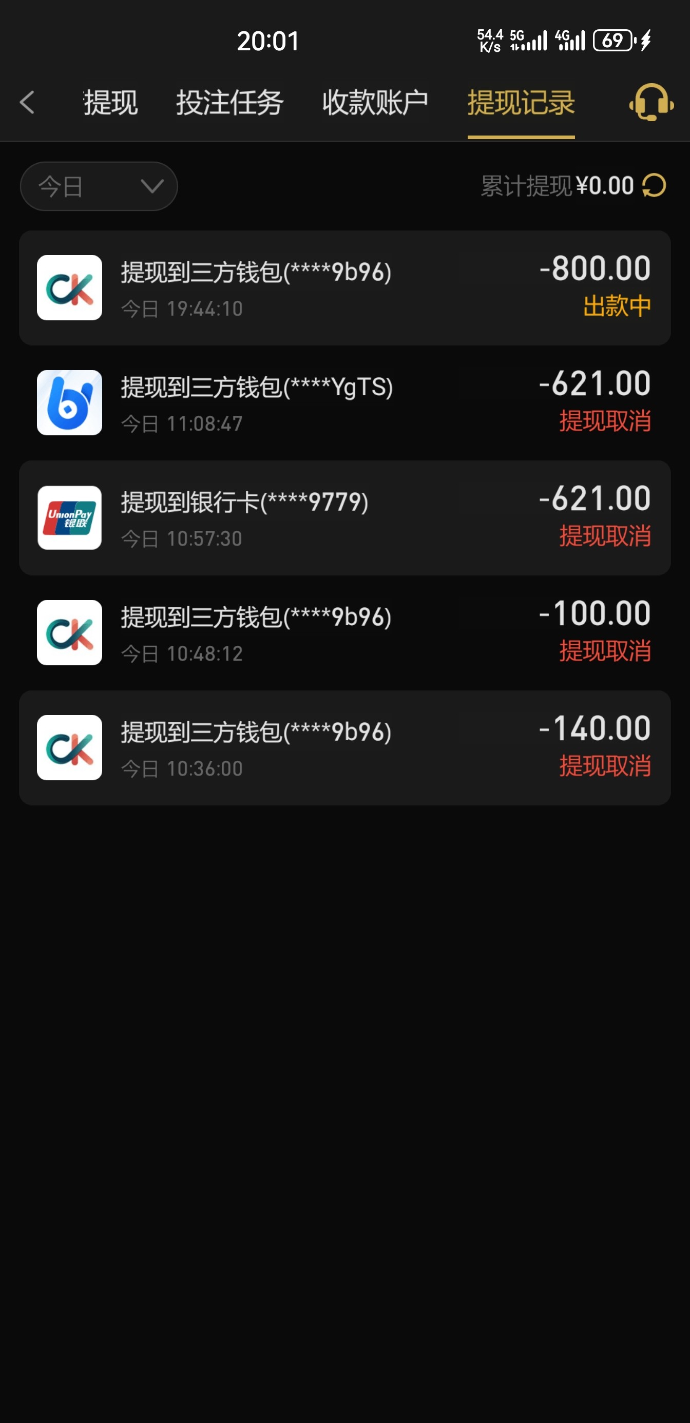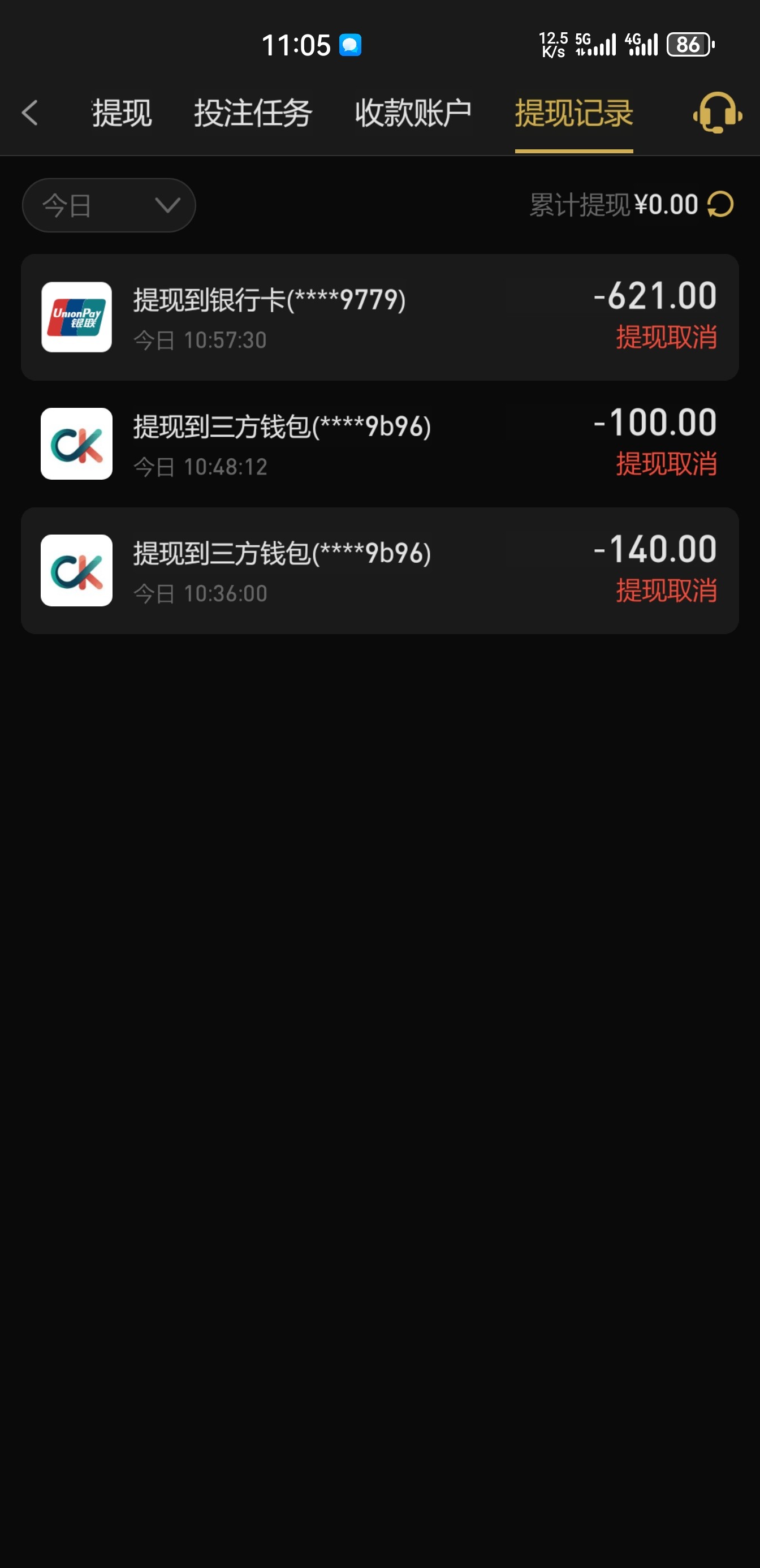 烟鬼502 180.我现在413一直提现取消,很烦,人家800都出了,就不给我出