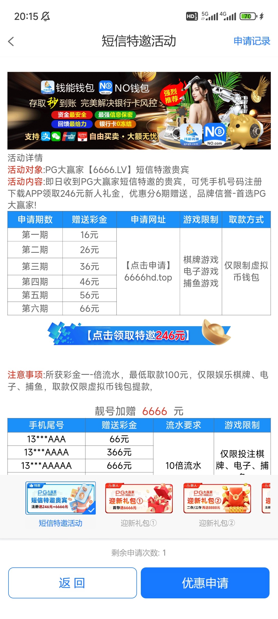我也收到短信,说账号涉嫌套利,充值100激活账号