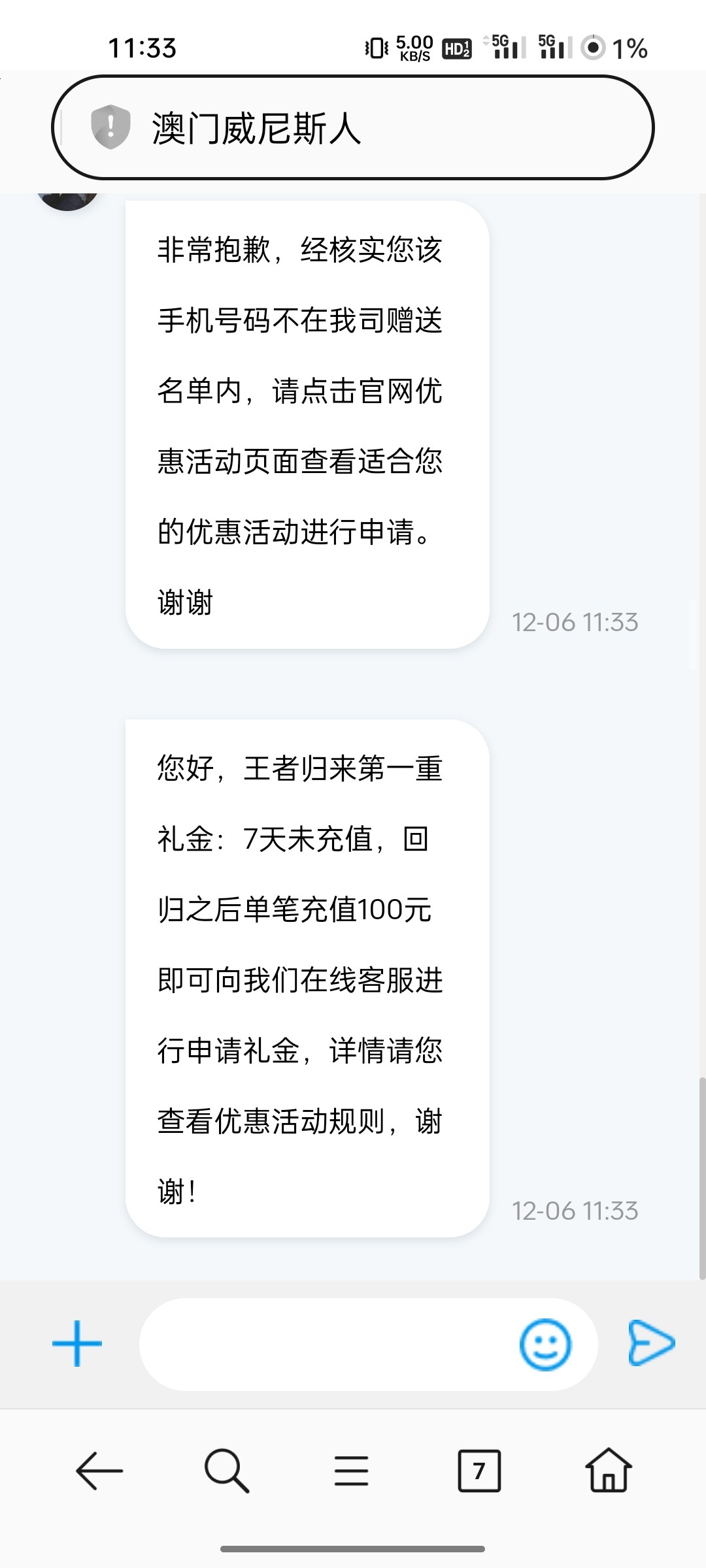 老用户才能申请,看看有没有下方短信,有的找在线客服申请回访彩金,碰到就是58,没有可以去喷瓷试试,具体自测吧。