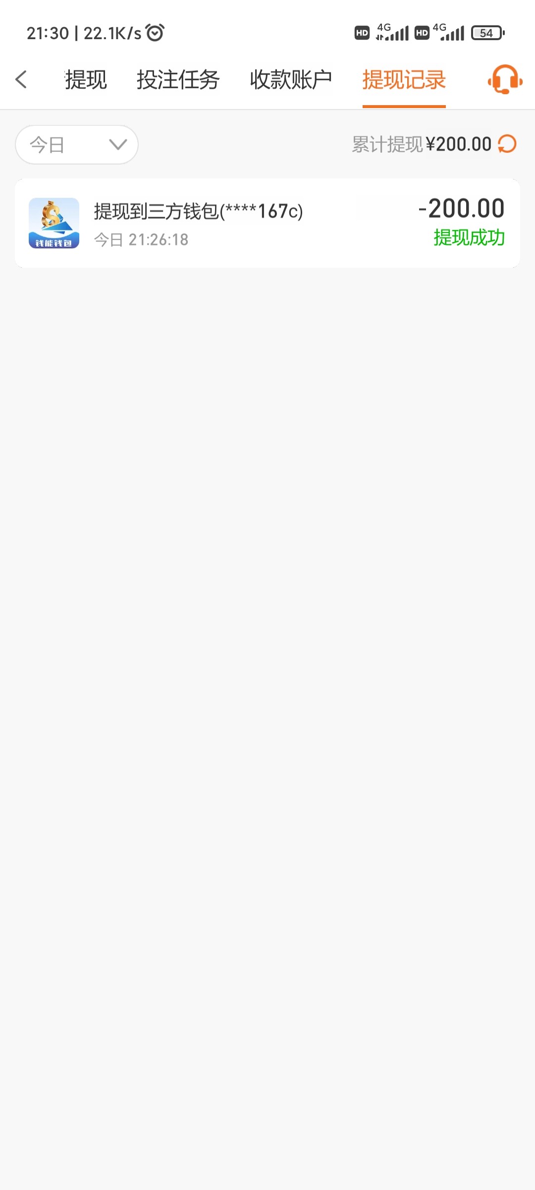 提了200,到账