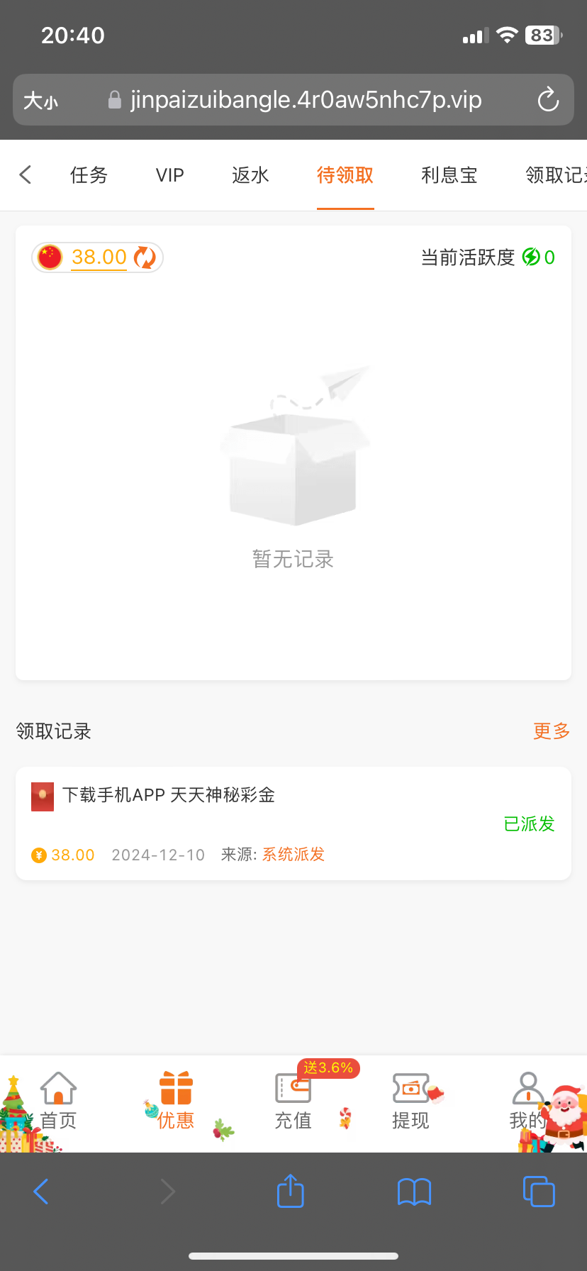 没充值过、领到了