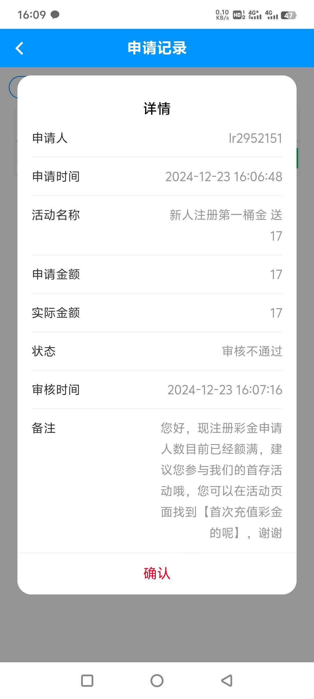 您好,注册彩金申请人数目前已经额满,建议您参与我们的首存活动哦,您可以在活动页面找到【首次充值彩金的呢】,谢谢