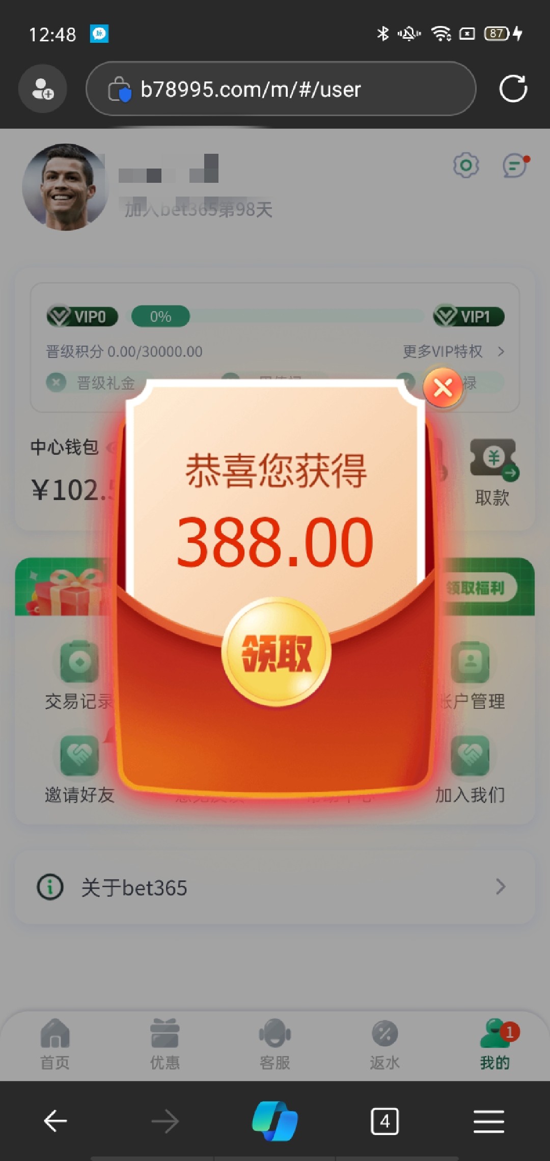 大家多注册账号,提现不限制任何渠道,一张银行卡,一个名字可以多注册,50天以后就可以申请388,以前不需要充值,现在人多了,需要充值100,找客服先问,让你过两天去就等到时间去,叫你充100就充,充了就会送,这台子不黑!这是我申请的第三个号,仅供参考!