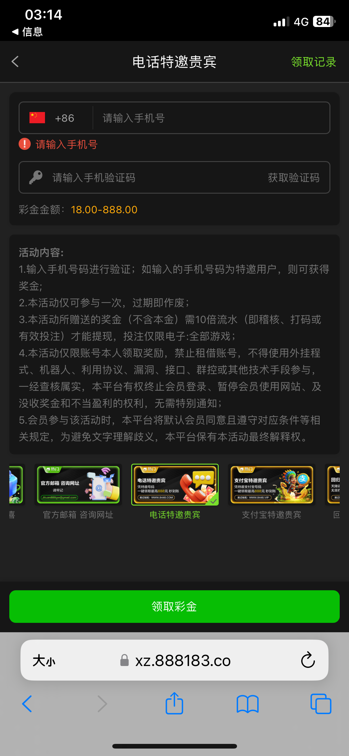 这个一看就是黑台,收到短信注册,申请却不是特邀