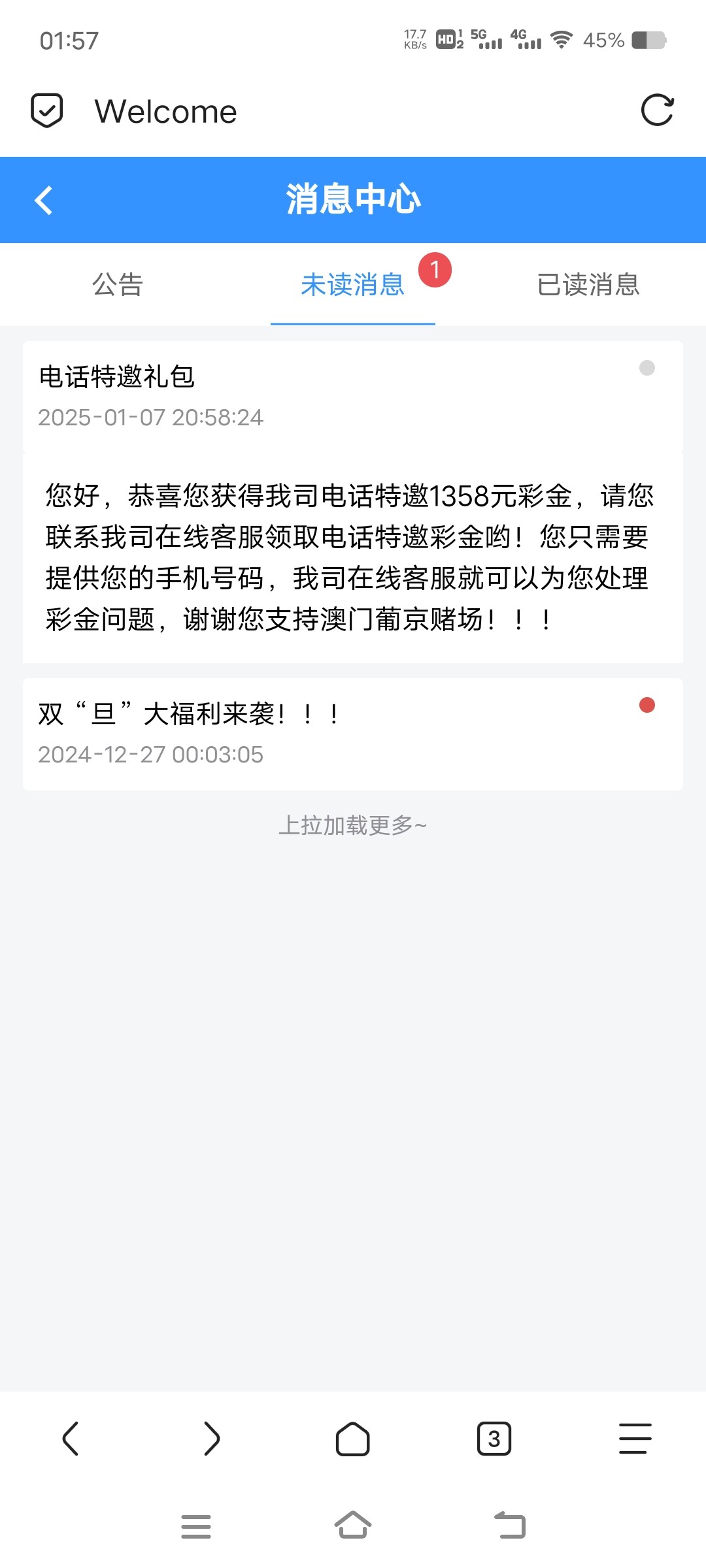 葡京7941和威尼斯人6567俩平台有号用户登录看看站内信有没有消息,有的找在线客服申请彩金,具体自测吧。