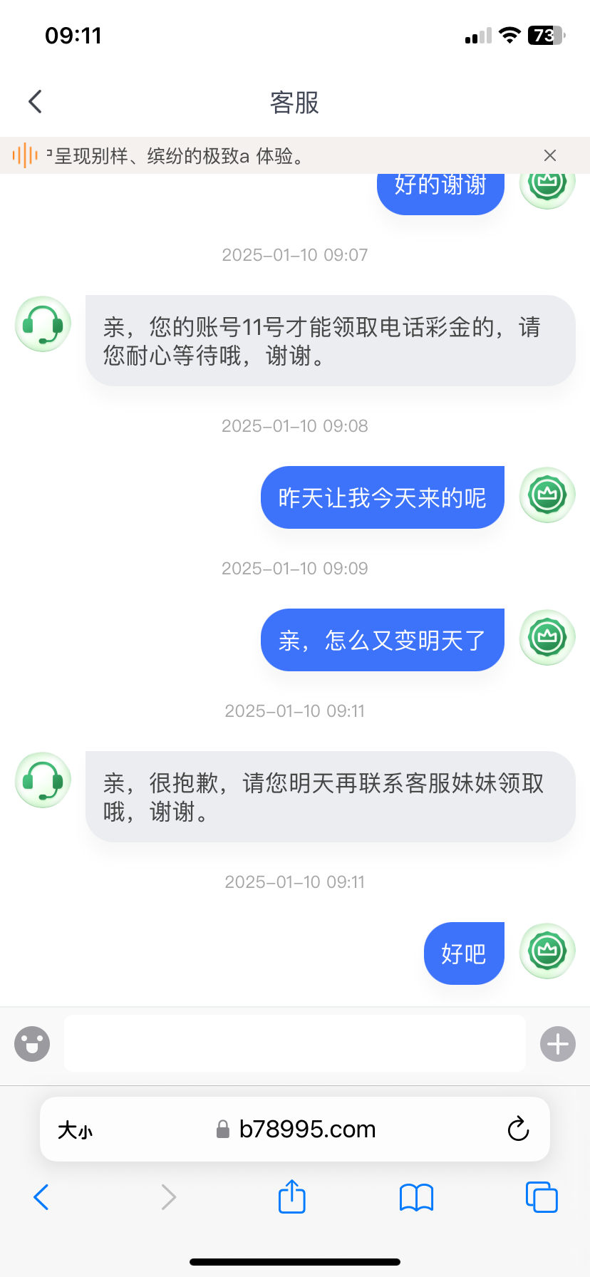 杂种客服,今天说明天,明天又说后天