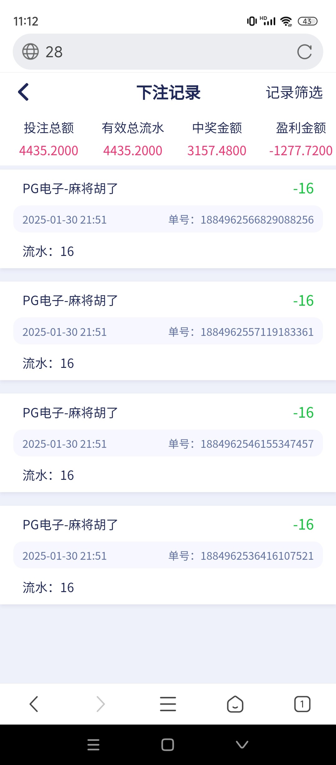 过年身上还有2320 今天买了两条烟320 剩下2000 想充个200报销一下烟钱 结果输了一直充 2000块钱全部输出去 身无分文了 每次身上有点钱 出去开销了或者消费了就想找狗庄报销 结果就是本金也搭进去 唉 我很少发帖 真的是不知道怎么戒