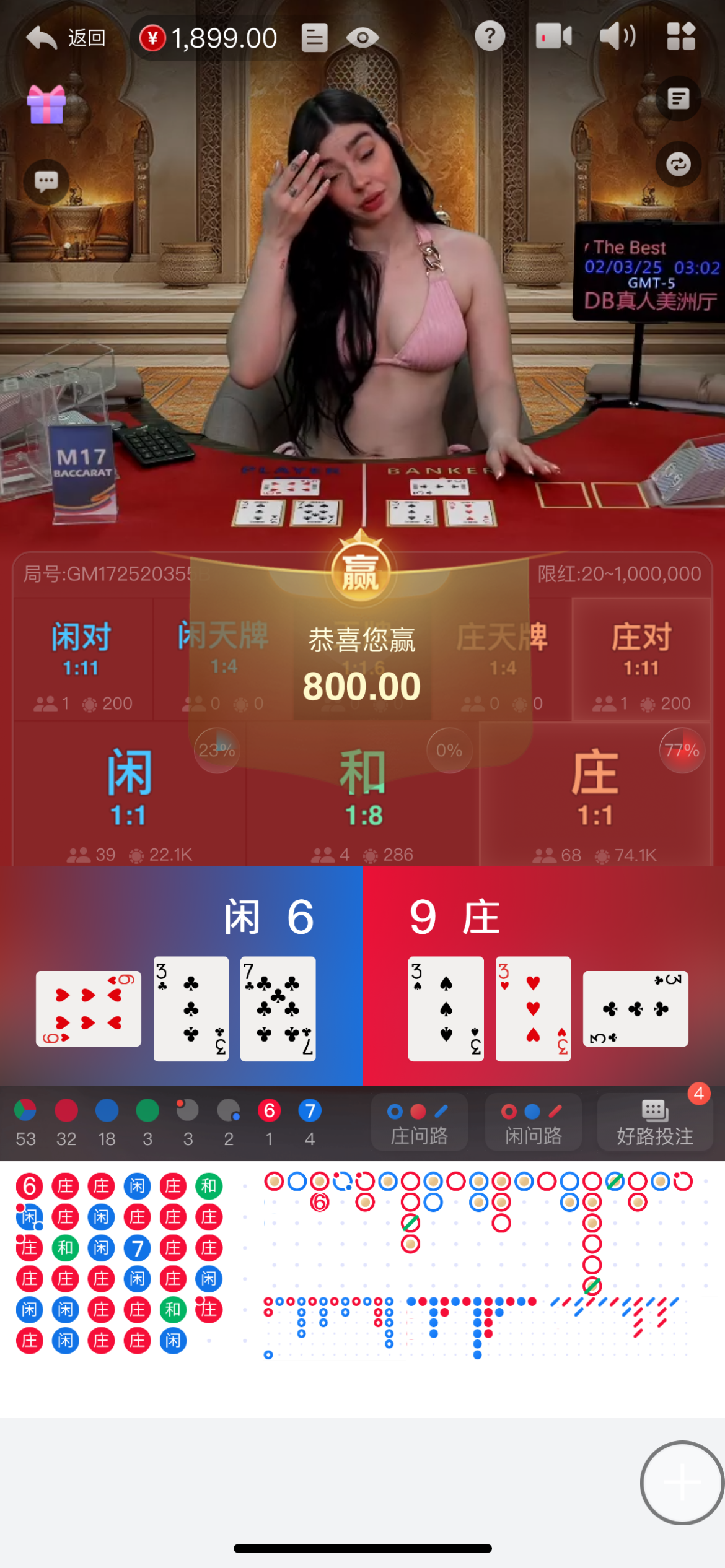 老哥这么稳吗 4点吃3点,1点吃0 还搞三个三拿9点 不叫你赌神不得了