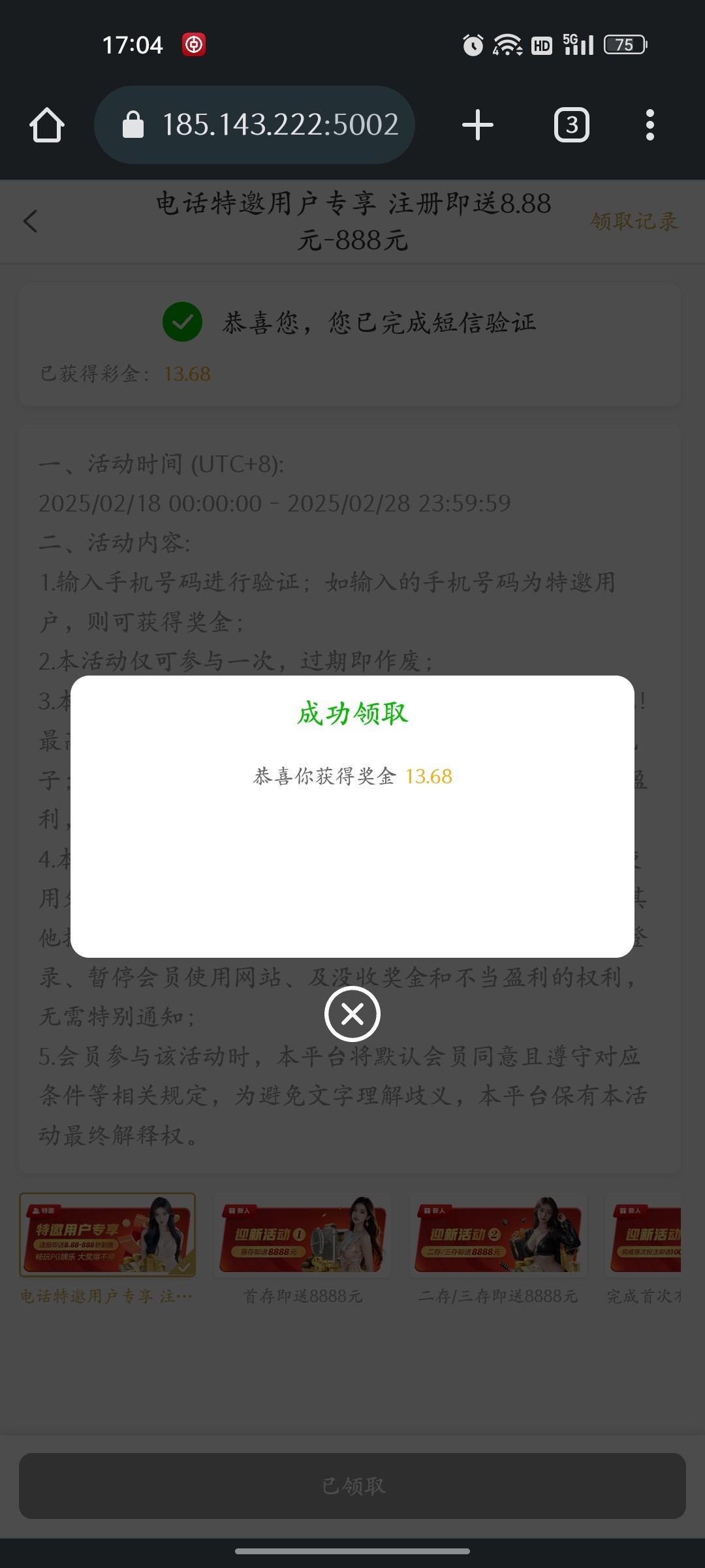 进去登陆了然后去优惠里面领取,我没打出来