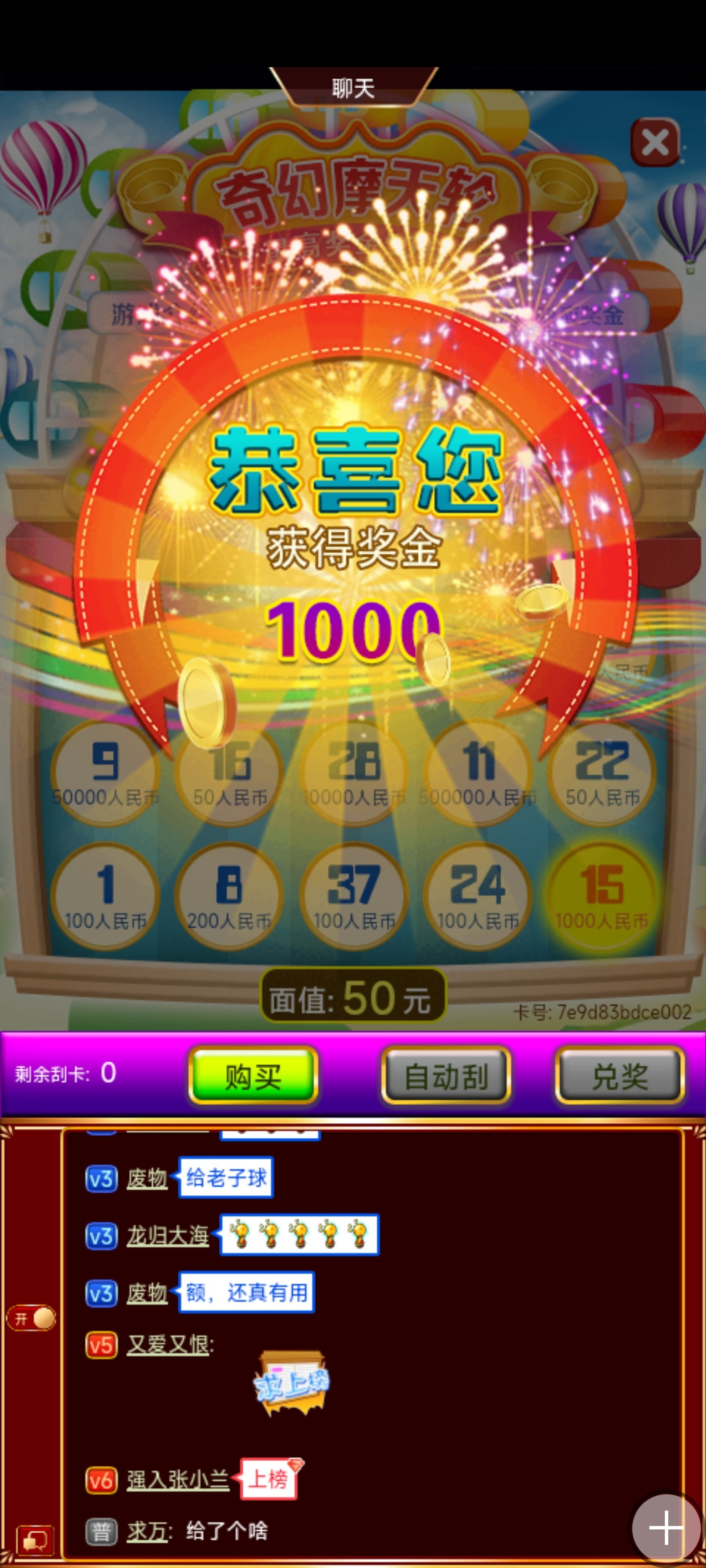 充100,买了三四张就给了,小赚500