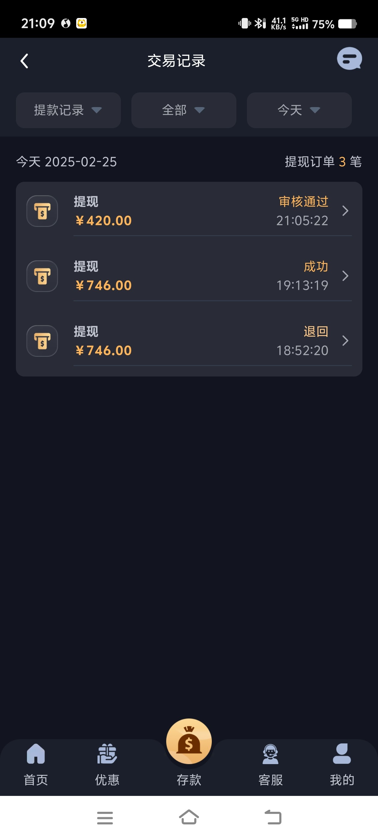 提款挺快的,首存500送了250 又存了100申请那个下载app的活动,游戏打的MG不朽 6块一拉打到1300 然后去拉幸运双星 18块一拉打到2700 流水打了2.7万 磨了很久倒是