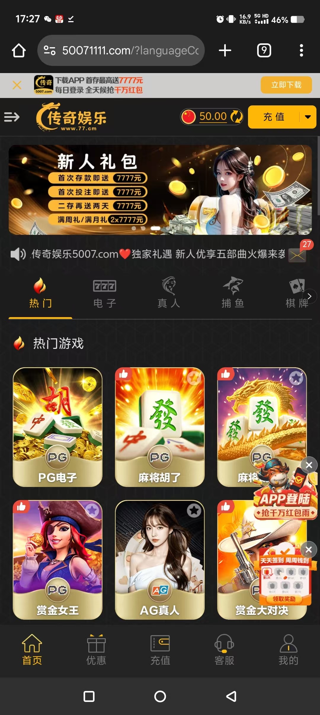 登录77.cm就有相应的vip彩金,
