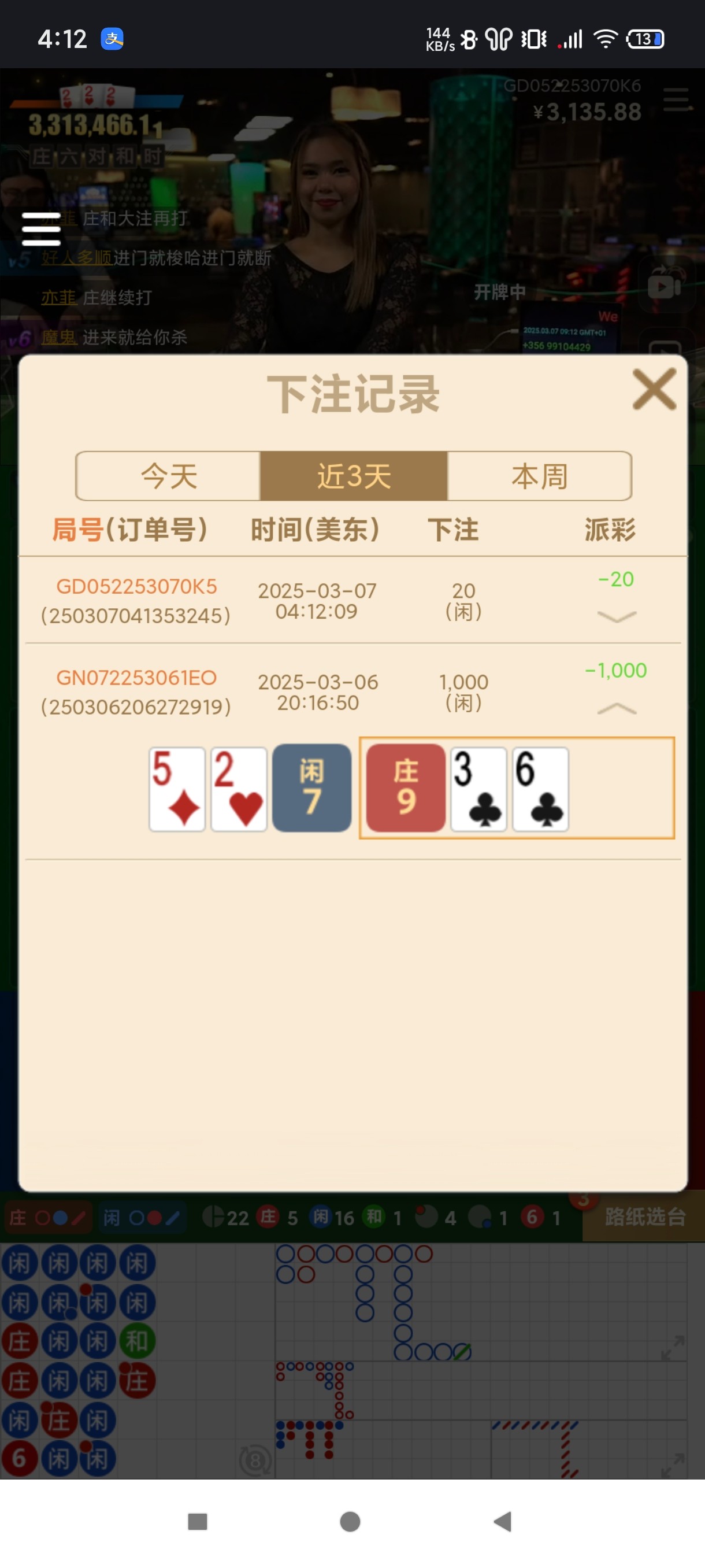 昨天也是。真就见鬼了。五把都是跟龙就断。