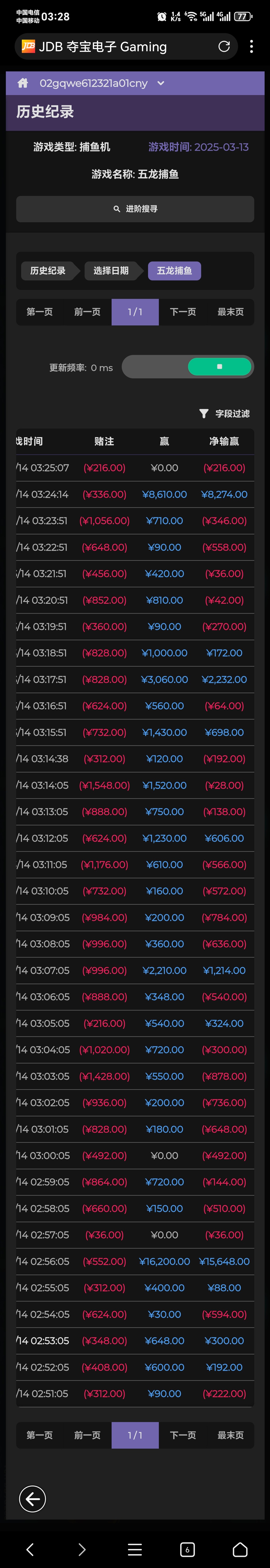 去年773这个台子这五龙捕鱼半个月给我放了3万多 每次都是充3百块钱慢慢打 赢两三千  后面再充几次就是铁鱼了 打不死了