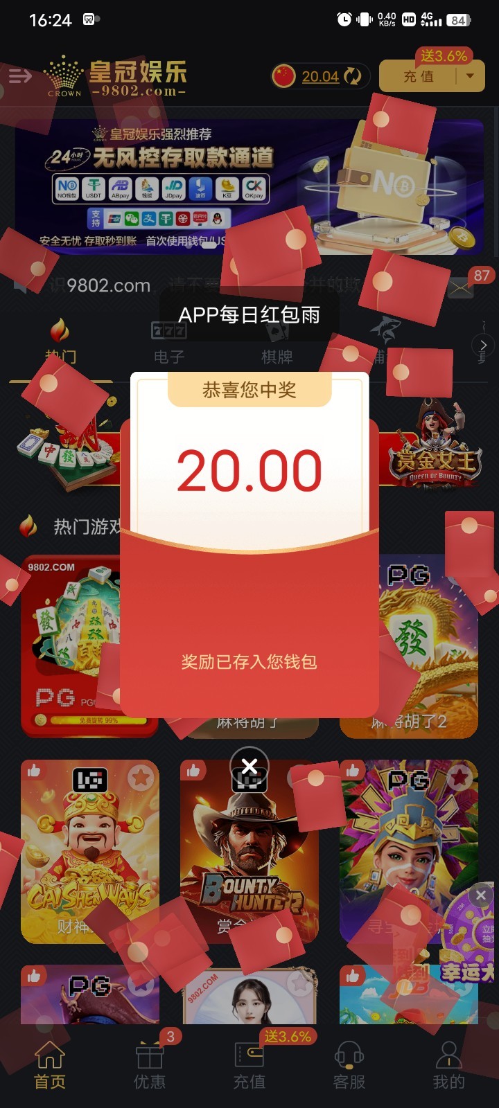 昨天刚上打100流水挂壁,今天十几分钟完事,50上800太爽了,提现秒到