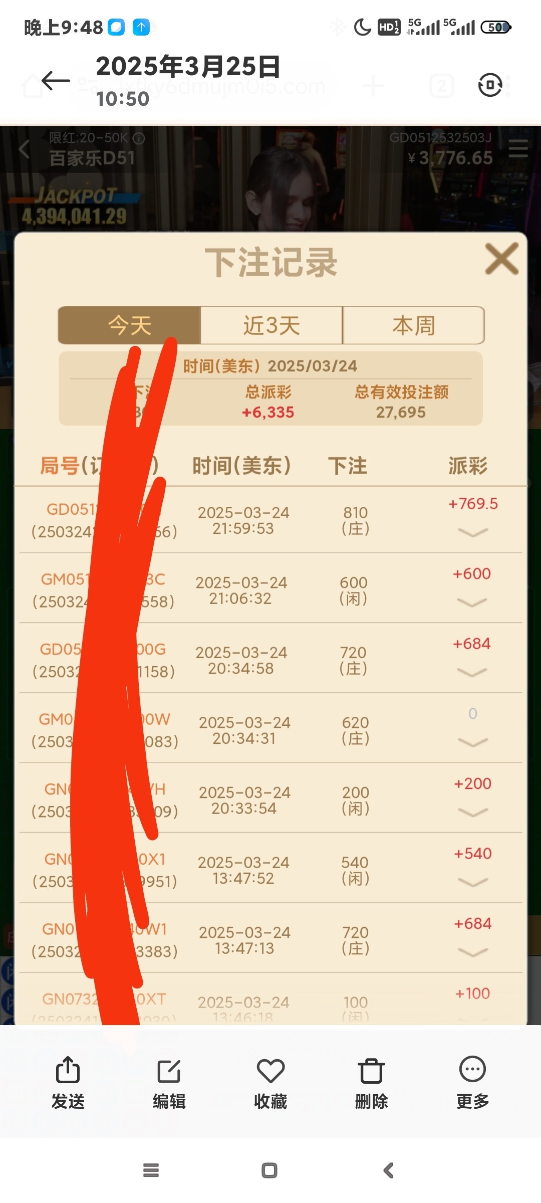 3. 注单号,5万的注单号,输了为什么不敢公布作比较?这样可以验证视频是否与注单号一样。