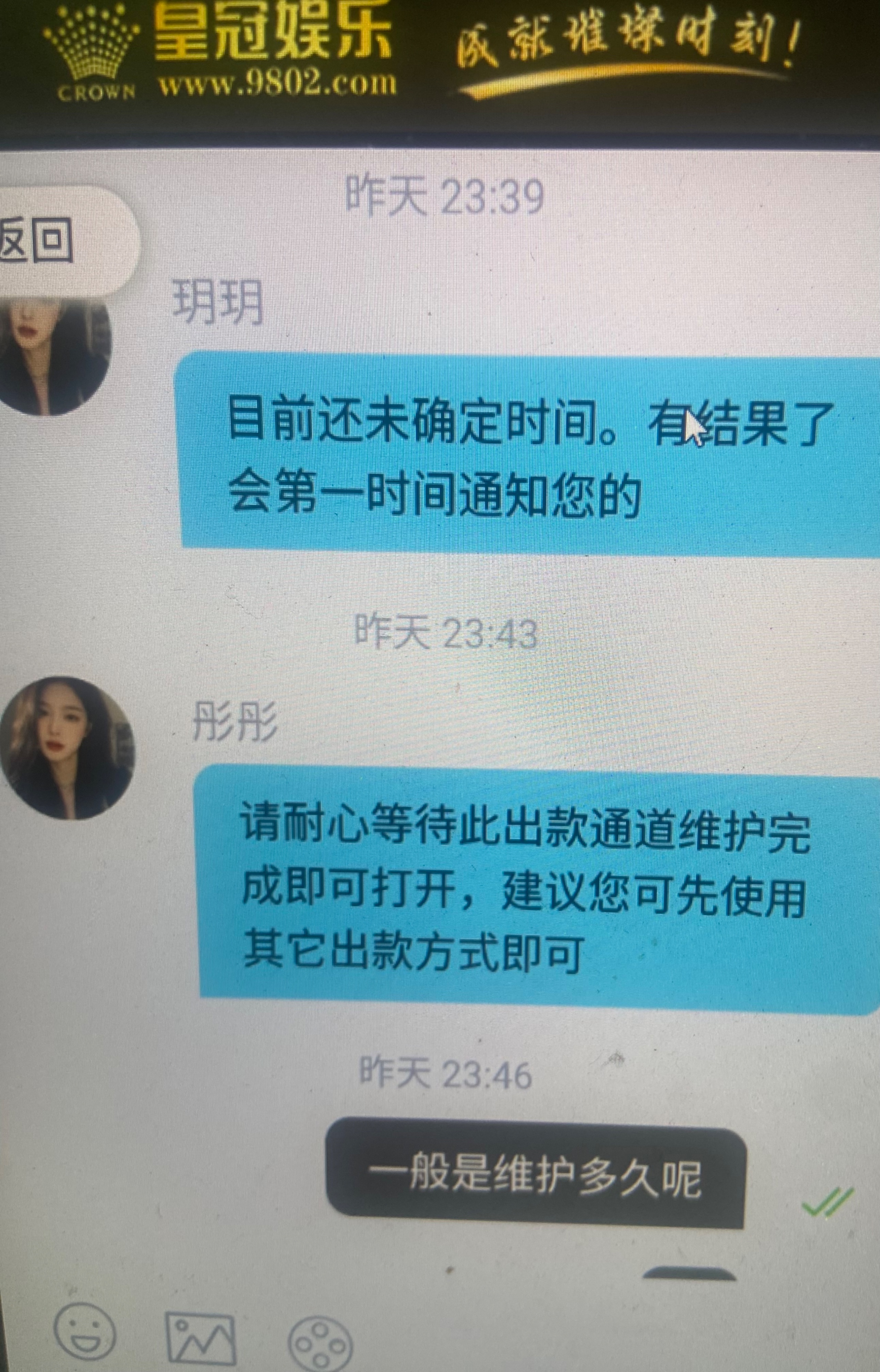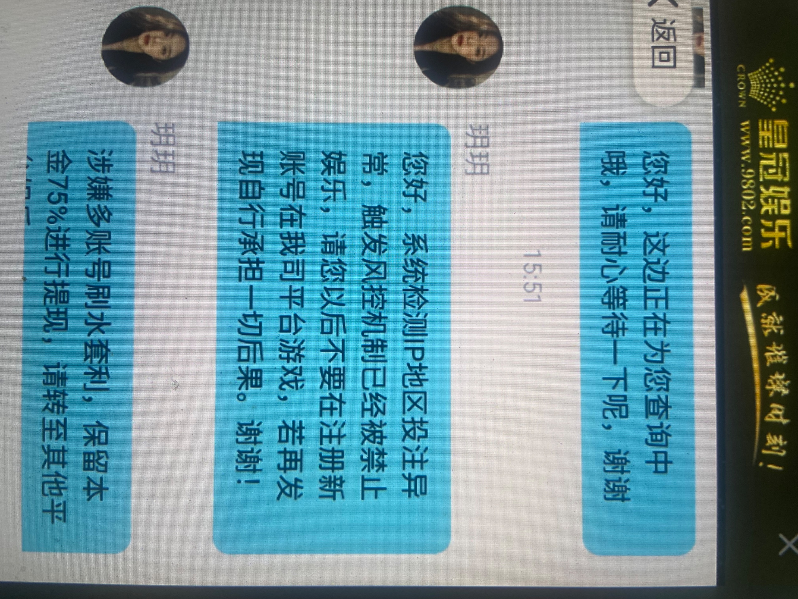 昨晚没事干打了皇冠100➕50以小博大玩LG电子上了1000后提u 因为我上也是用u上的分 一开始跟我说维护 后面又说是要手持然后叫我出钱包或者支付宝 出支付宝他显示说我账号不对一直卡到后面装都不装了直接说我对打 老哥们小心了