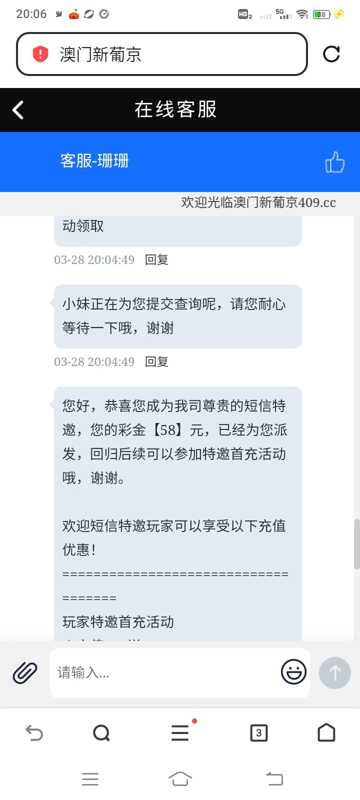 409短信特邀58彩金