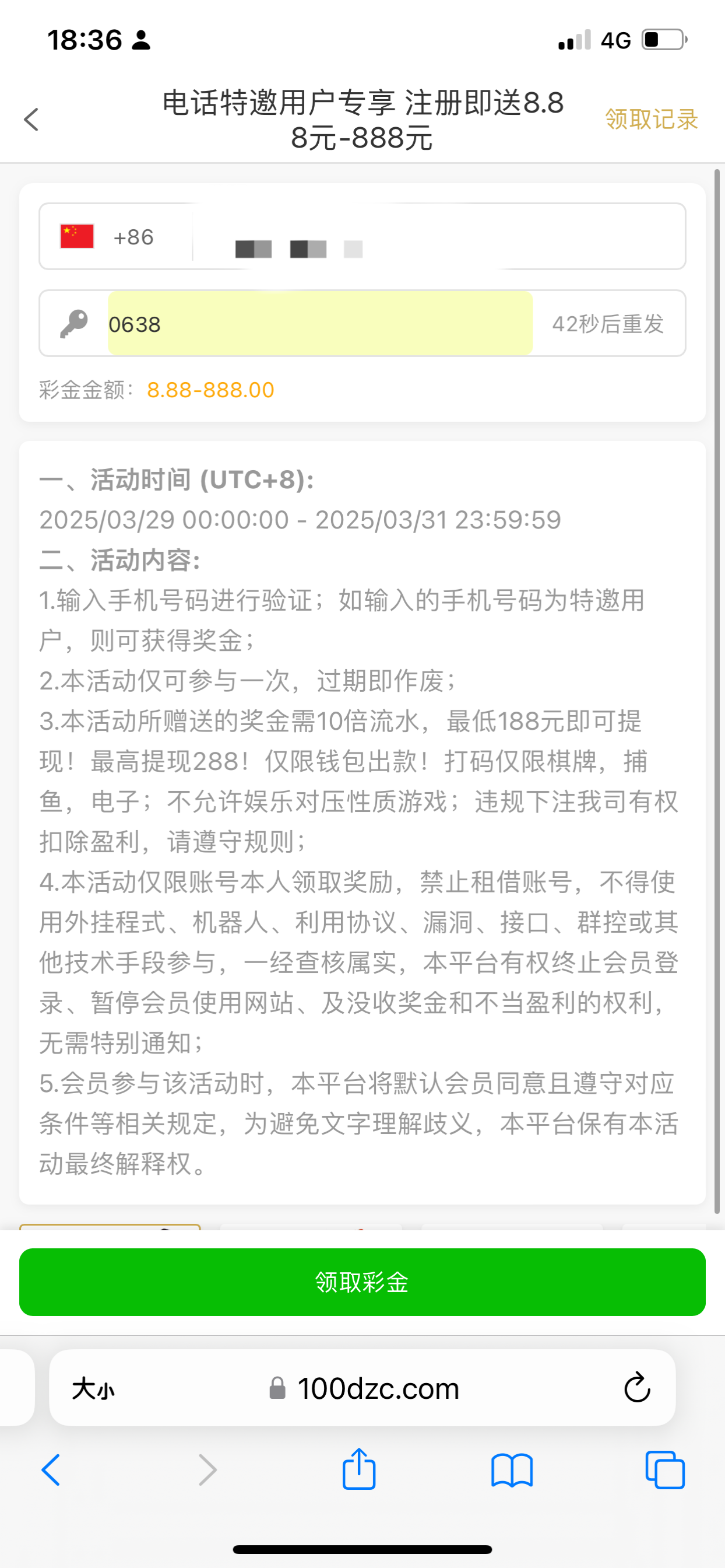PG100电话特邀彩金