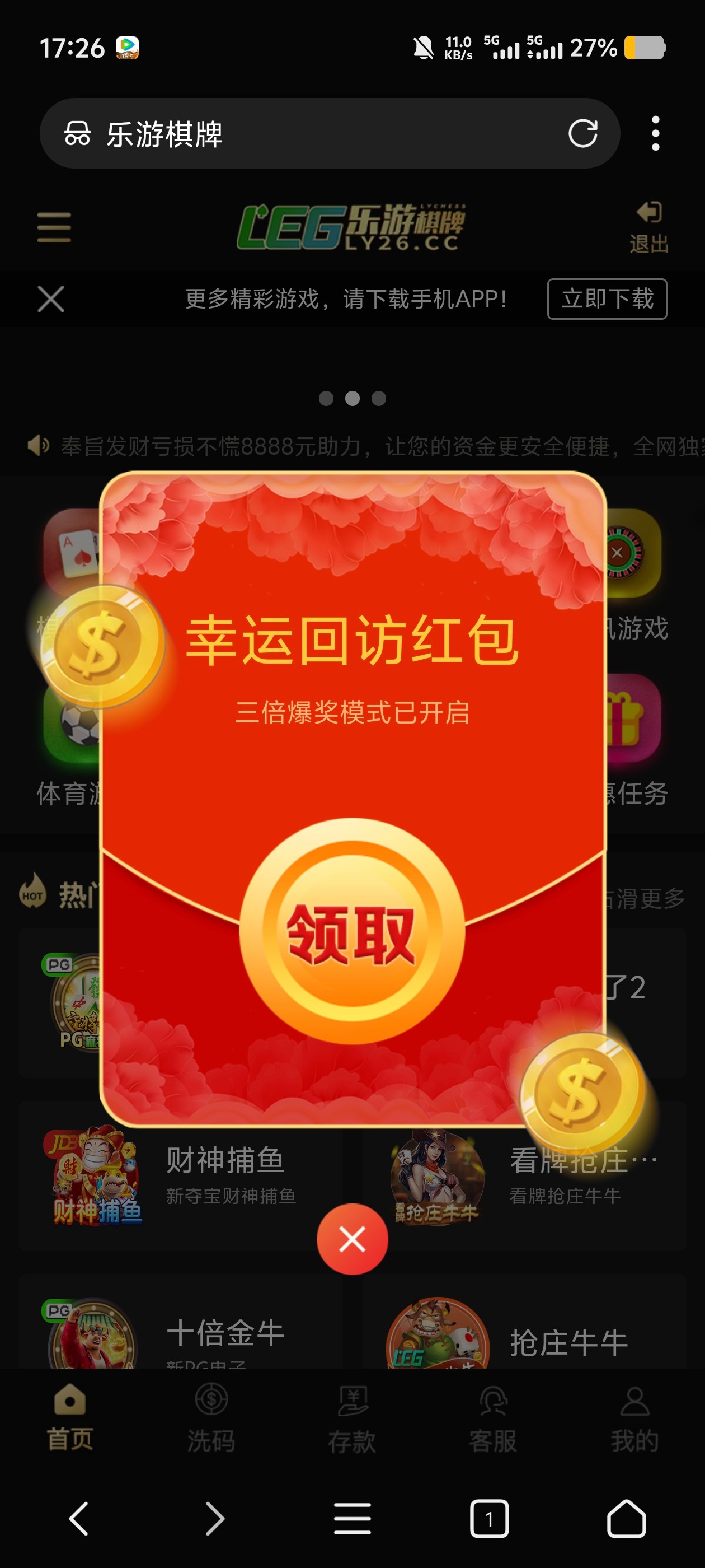 ly01和ly26的乐游棋牌(两个都有回访红包活动),这个活动时不时会有,38直接干上1k提了,有号的可以看看
