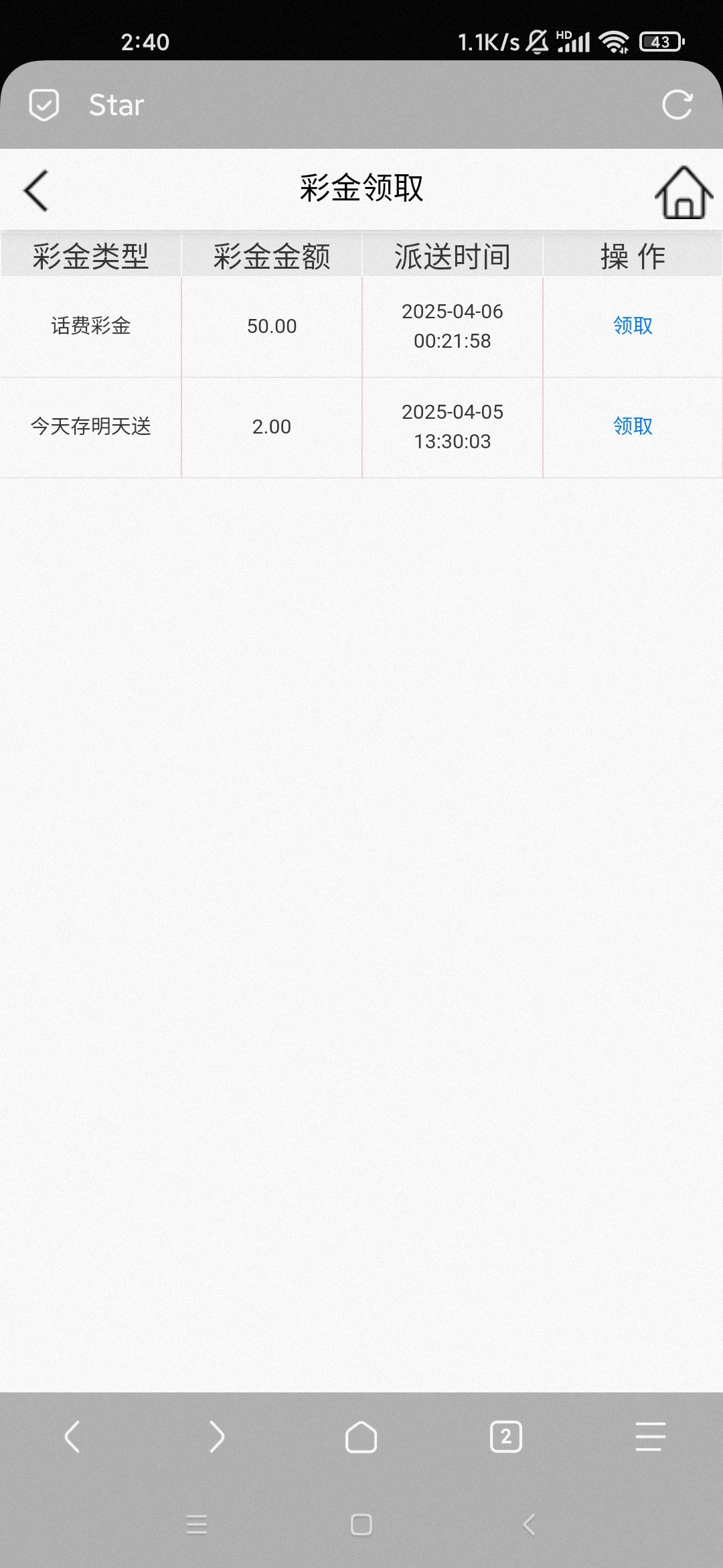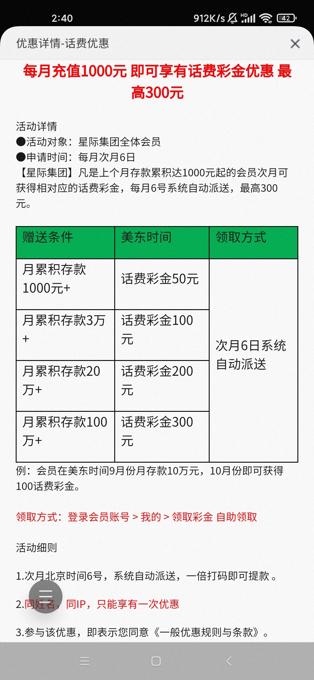 星际充值过话费彩金