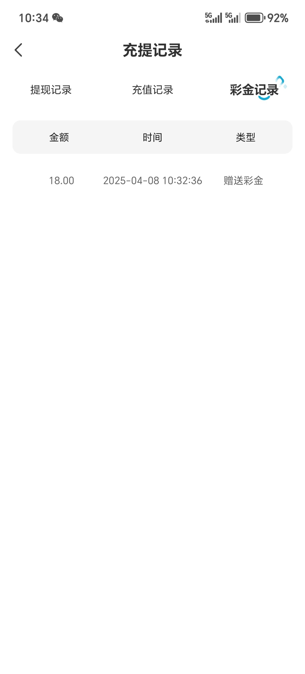 给了18元彩金
