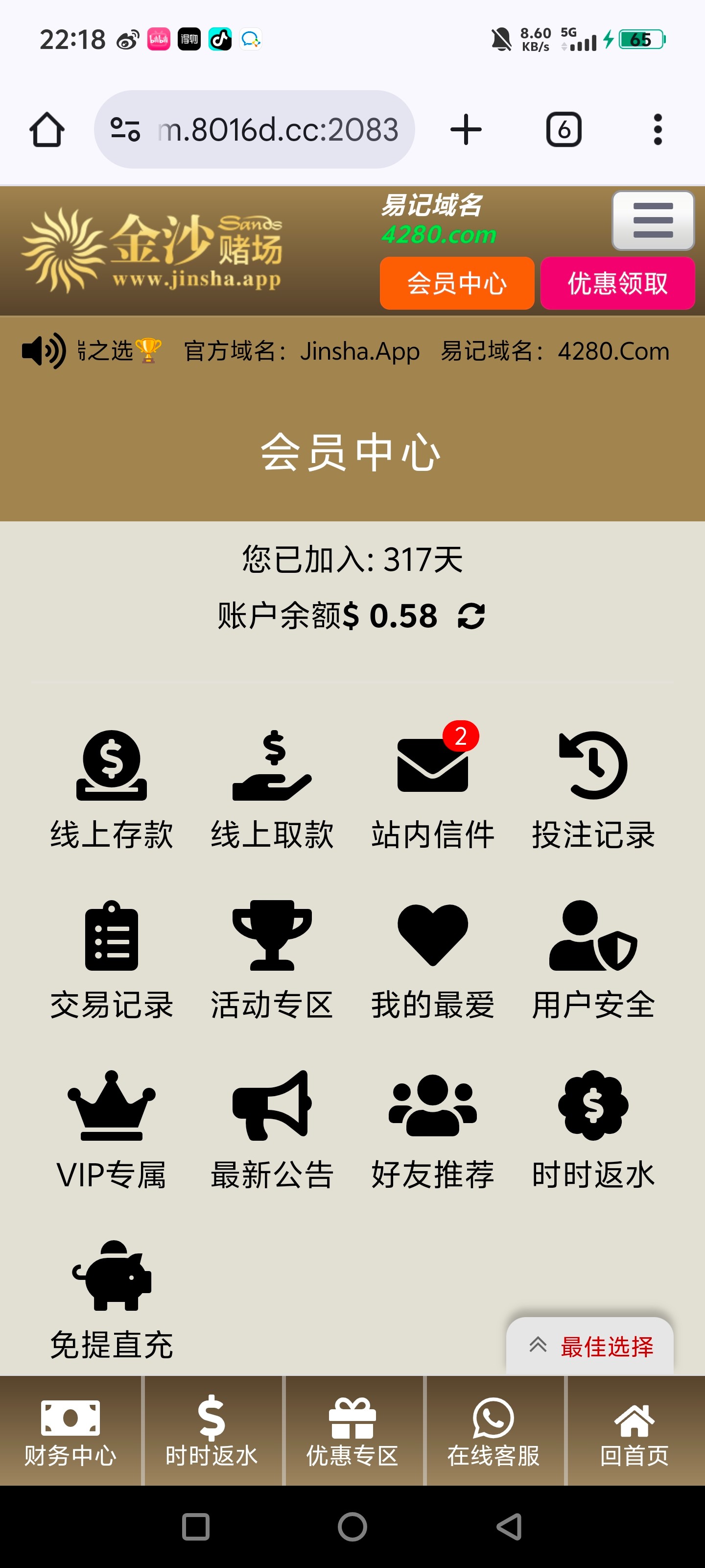 2274227 这个网站和葡京赌场是啥关系???????从没登录过这个网,刚登录就尼玛币v10了。。。。