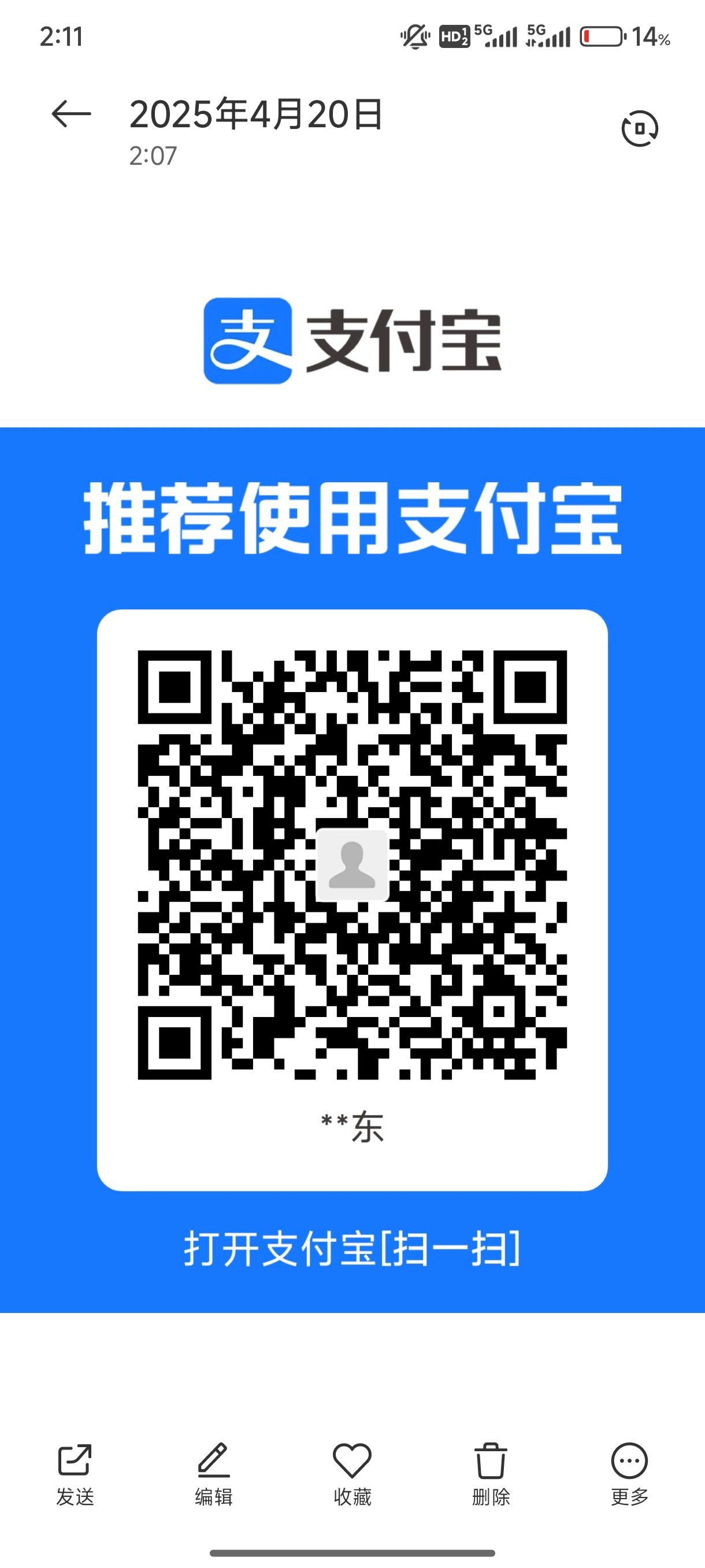留支付宝二维码抽5个38