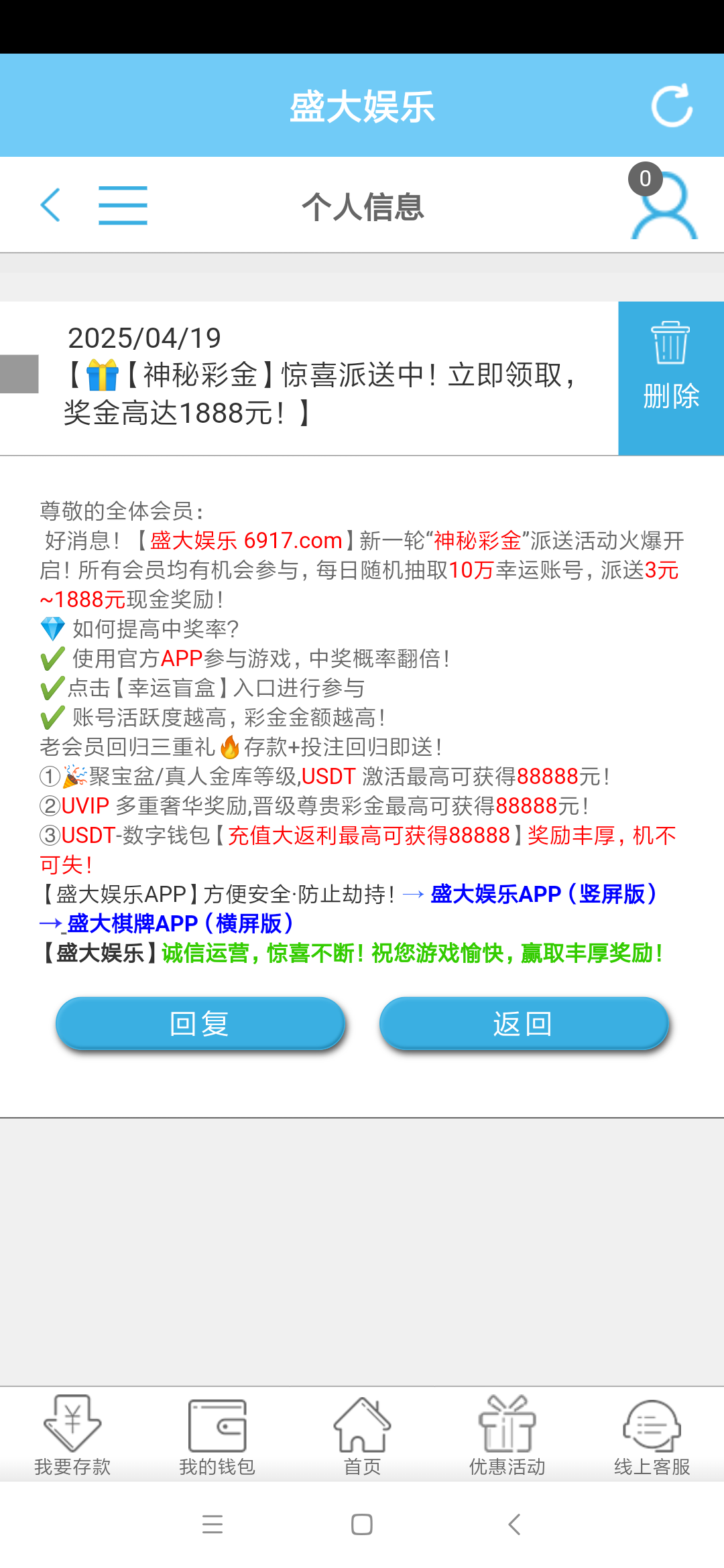 盛大站内信神秘彩金