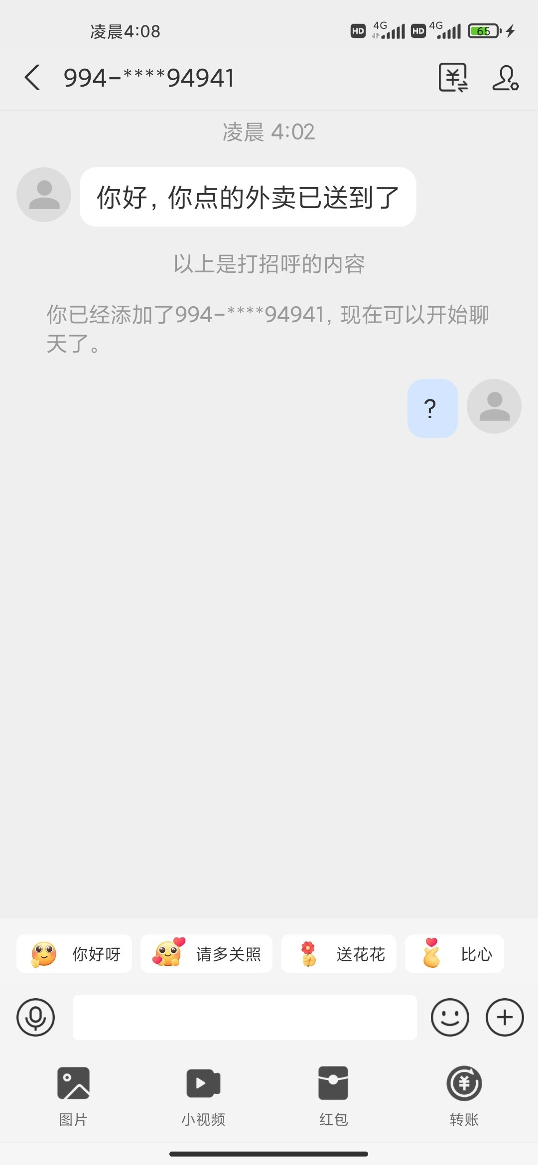 523020xu 你怎么跟傻杯一样,你的外卖到了,只是他给你发加好友的验证消息,后面会给你发网址的