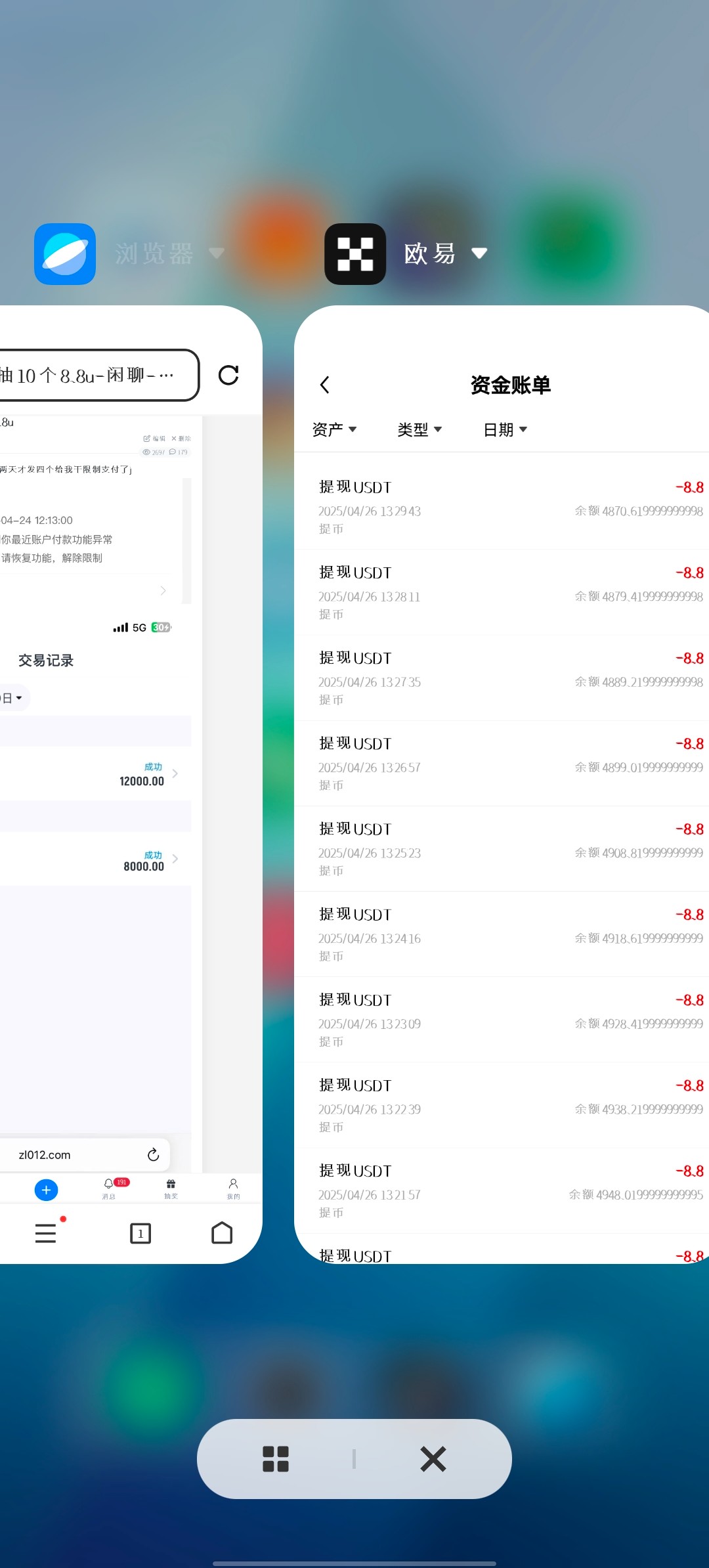 显然是假的,欧易账单的扣款金额跟余额都对不上。这些b就他妈又穷又爱装。